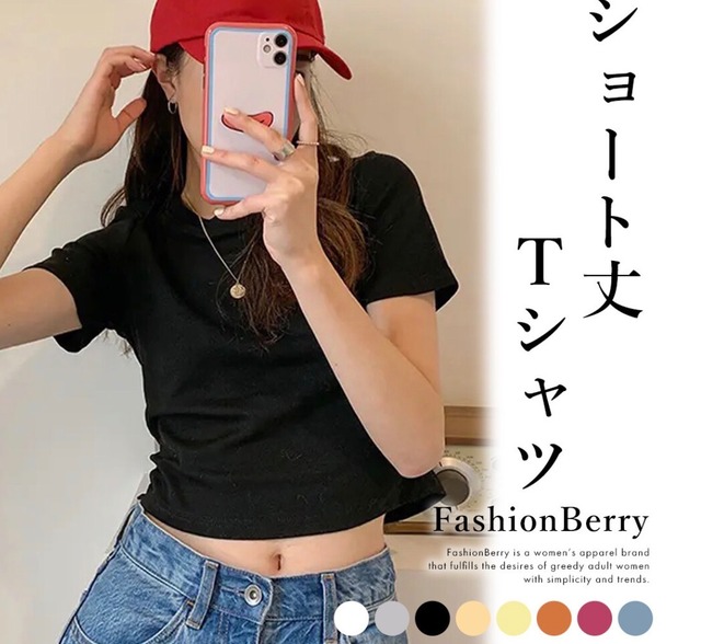 【大人気】ショート丈 Tシャツ へそ出し 無地