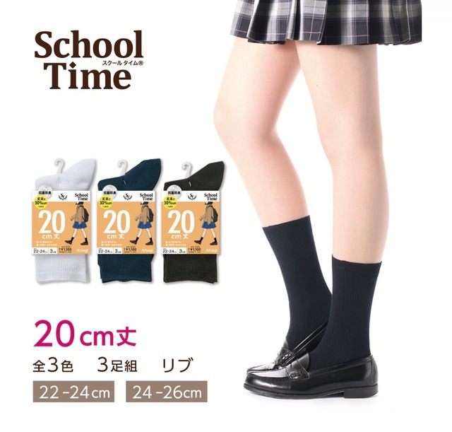 【スクールタイム】ジャストクルー丈 20cm丈 3足組