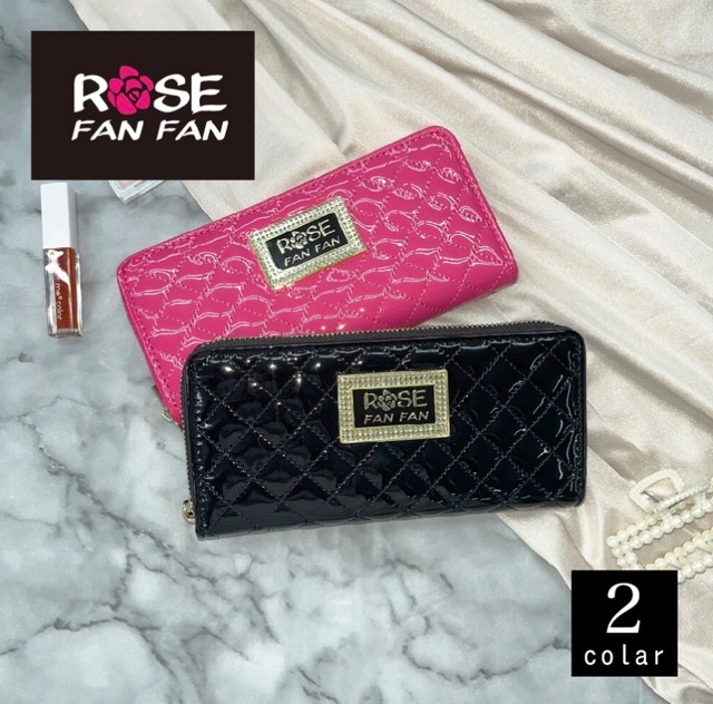ROSE FANFAN エナメルキルト ラウンドファスナー長財布