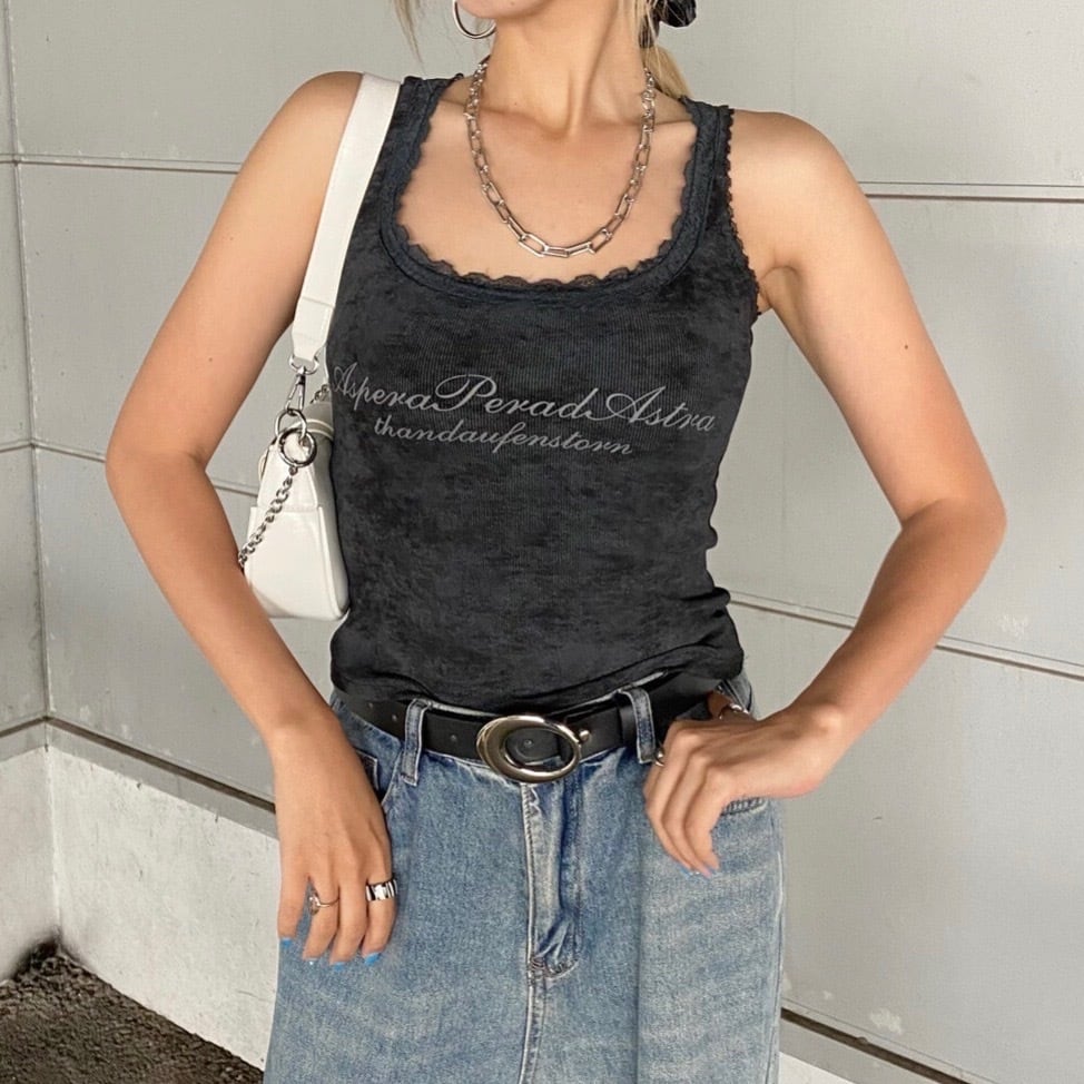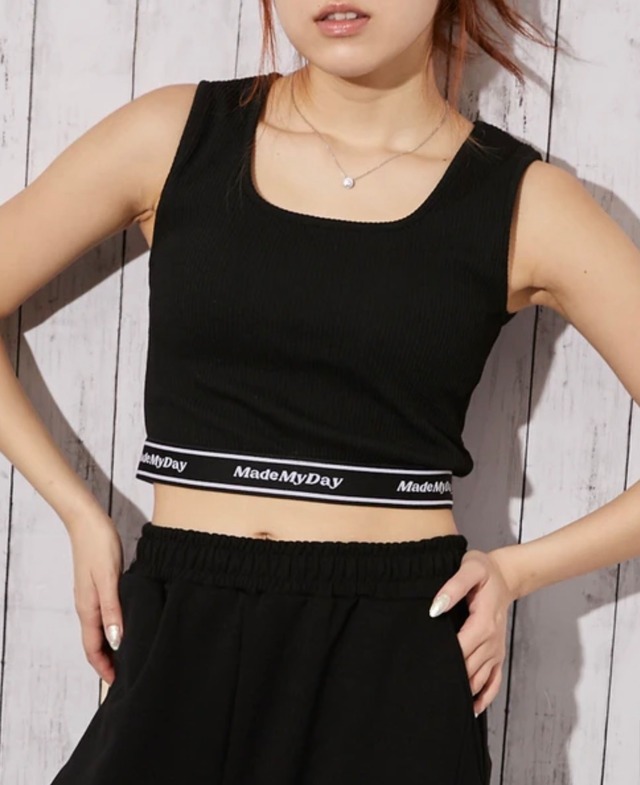 《カップ付き ロゴ》タンクトップ/スポーティー×Y2K/オールシーズン/ブラック