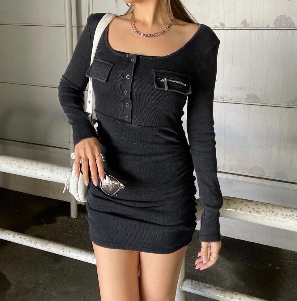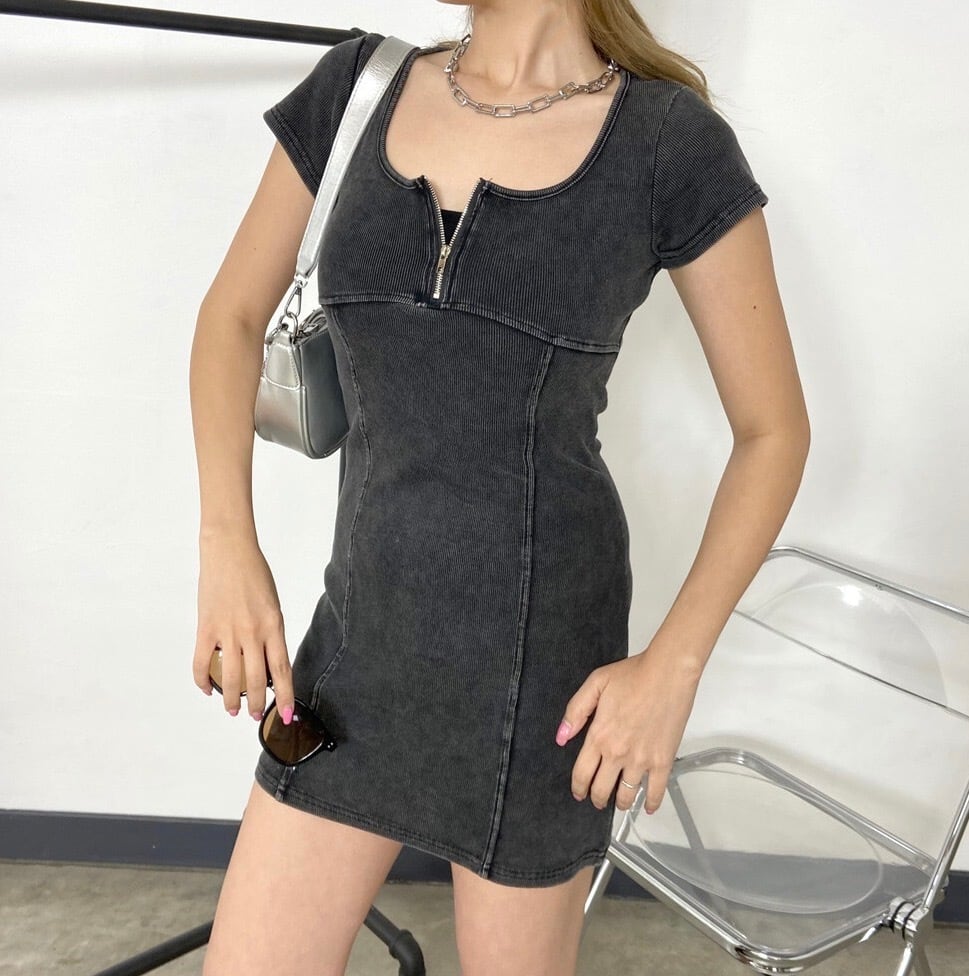 【数量限定 ネックレス付】今シーズン再販決定】【2025新作】ZIP切替ミニワンピース Y2K ハーフジップ タイトワンピース