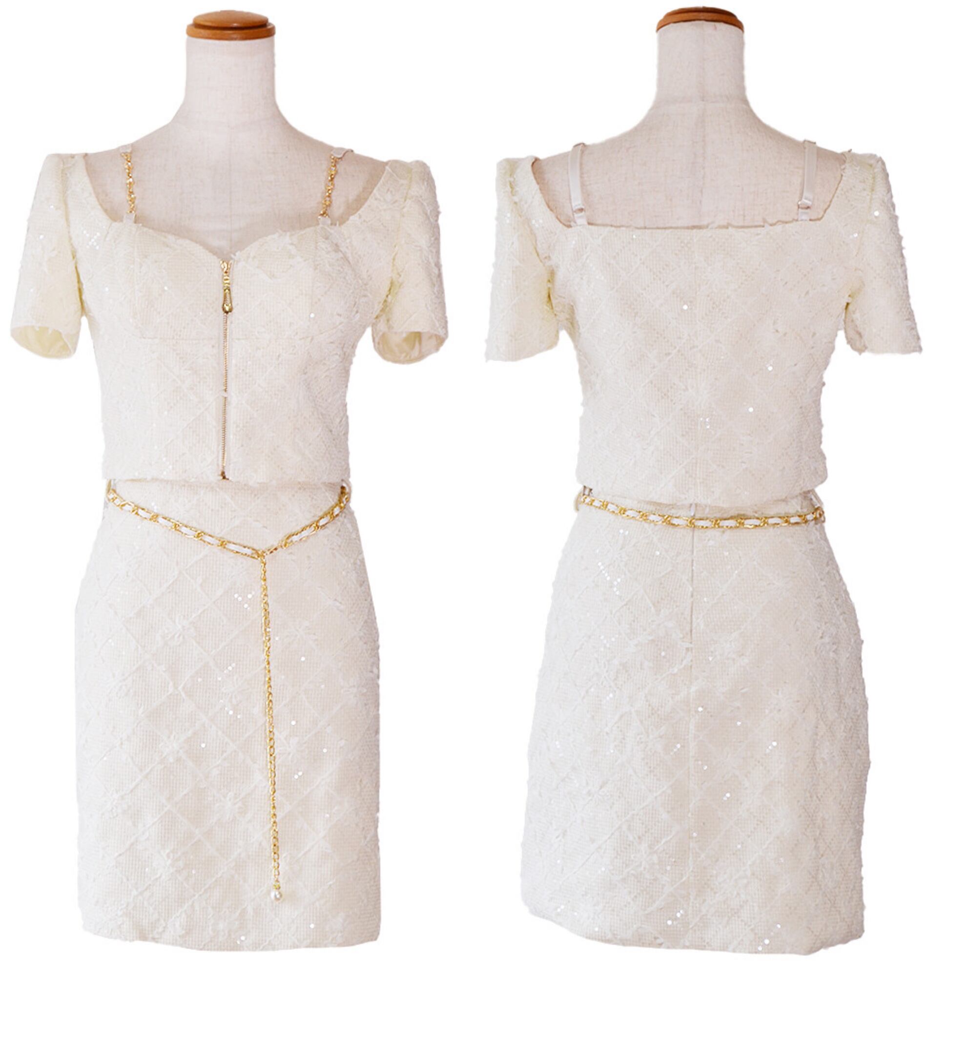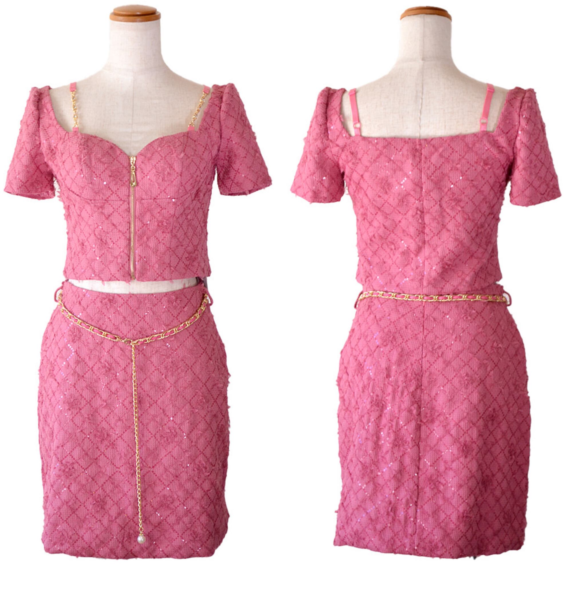 【キャバドレス】【SMLサイズ/2カラー】セットアップ ファスナー チェーン パール ショルダーストーン タイト セクシー ミニドレス キャバドレス