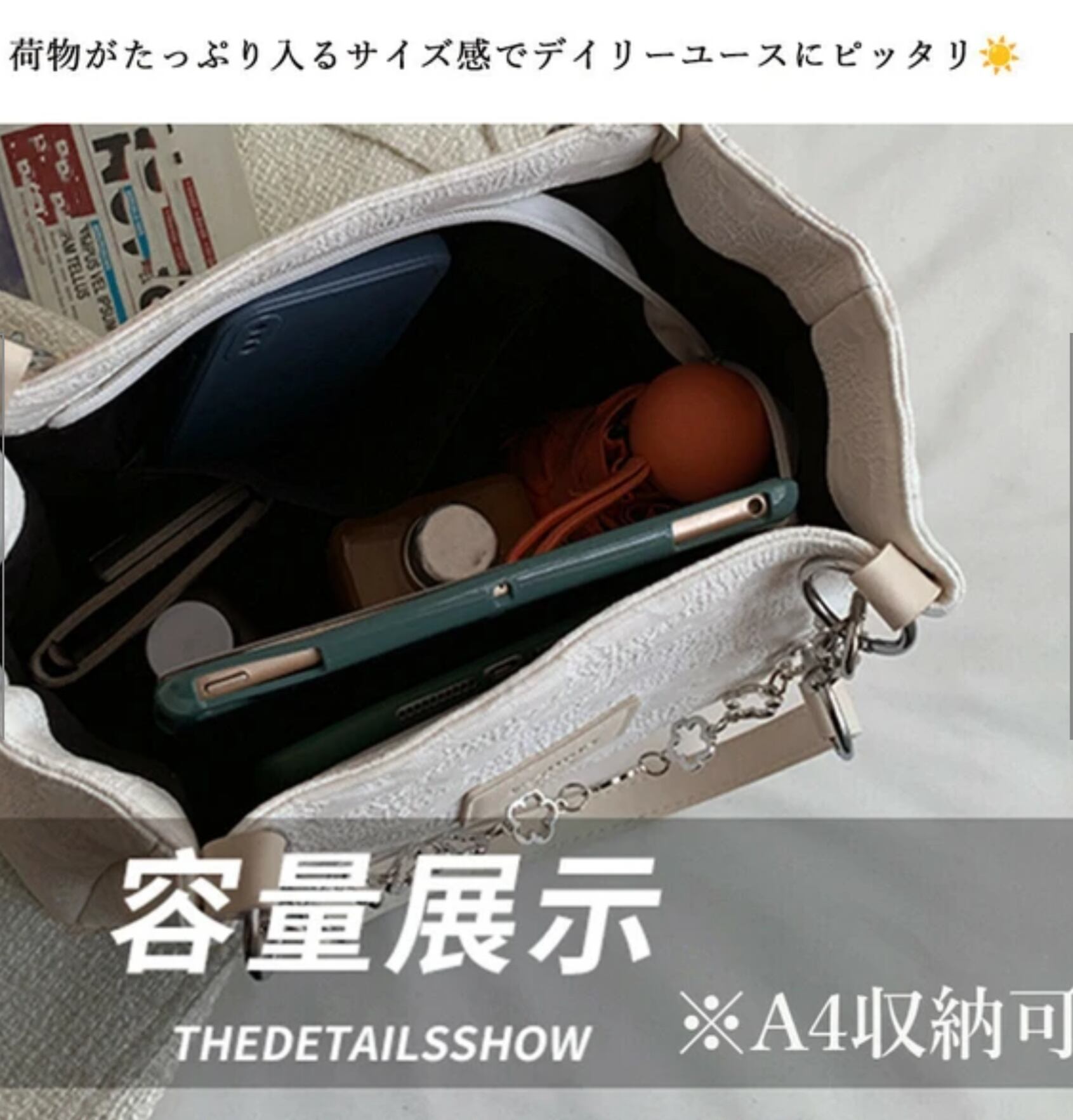 A4サイズはもちろん、荷物がたっぷり入るサイズ感でデイリーユースにピッタリ