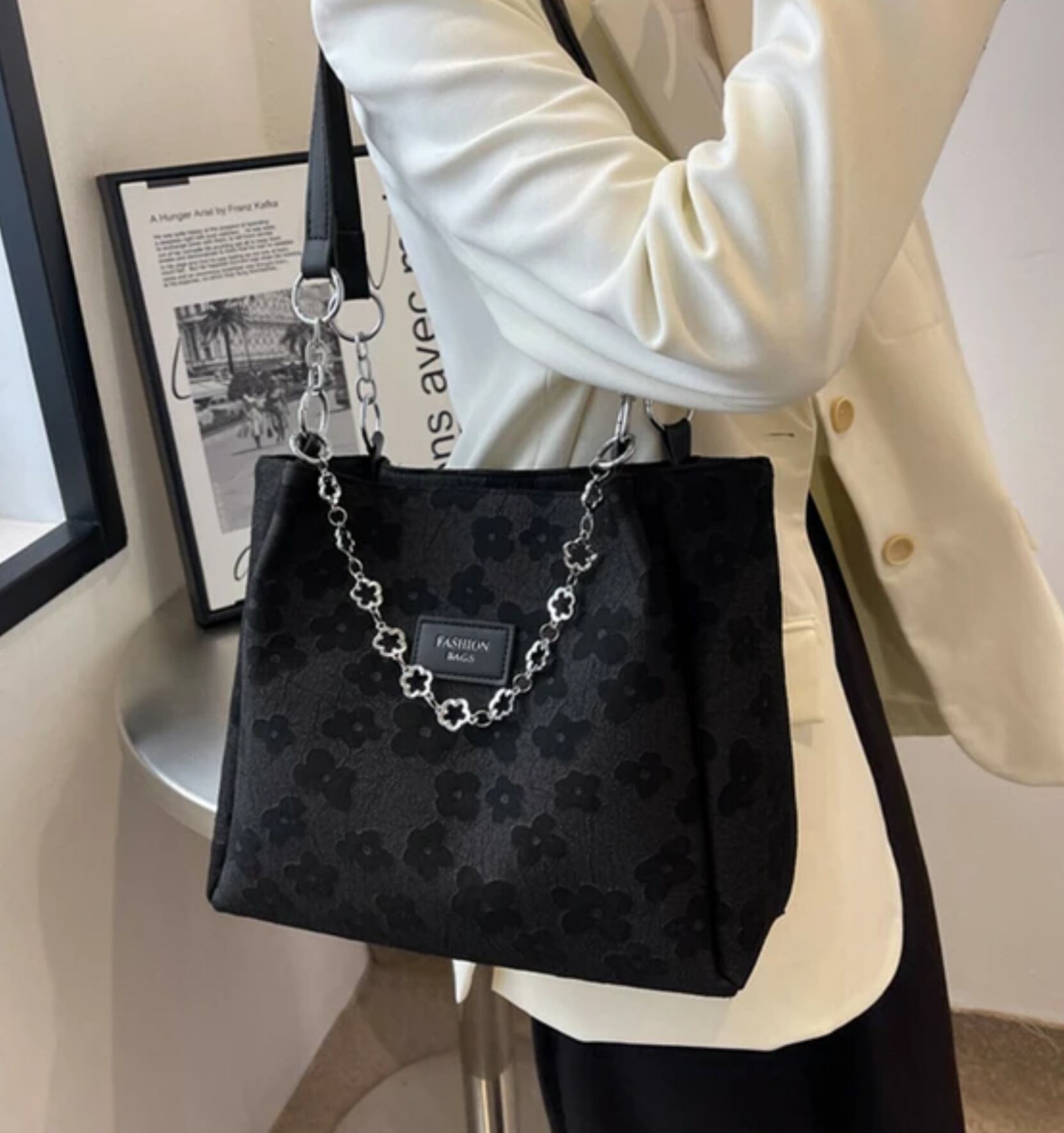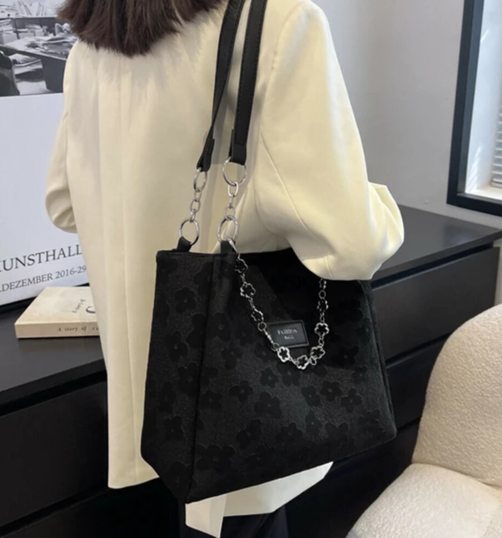 大人可愛らしいフラワーデザインの PUレザートートバック