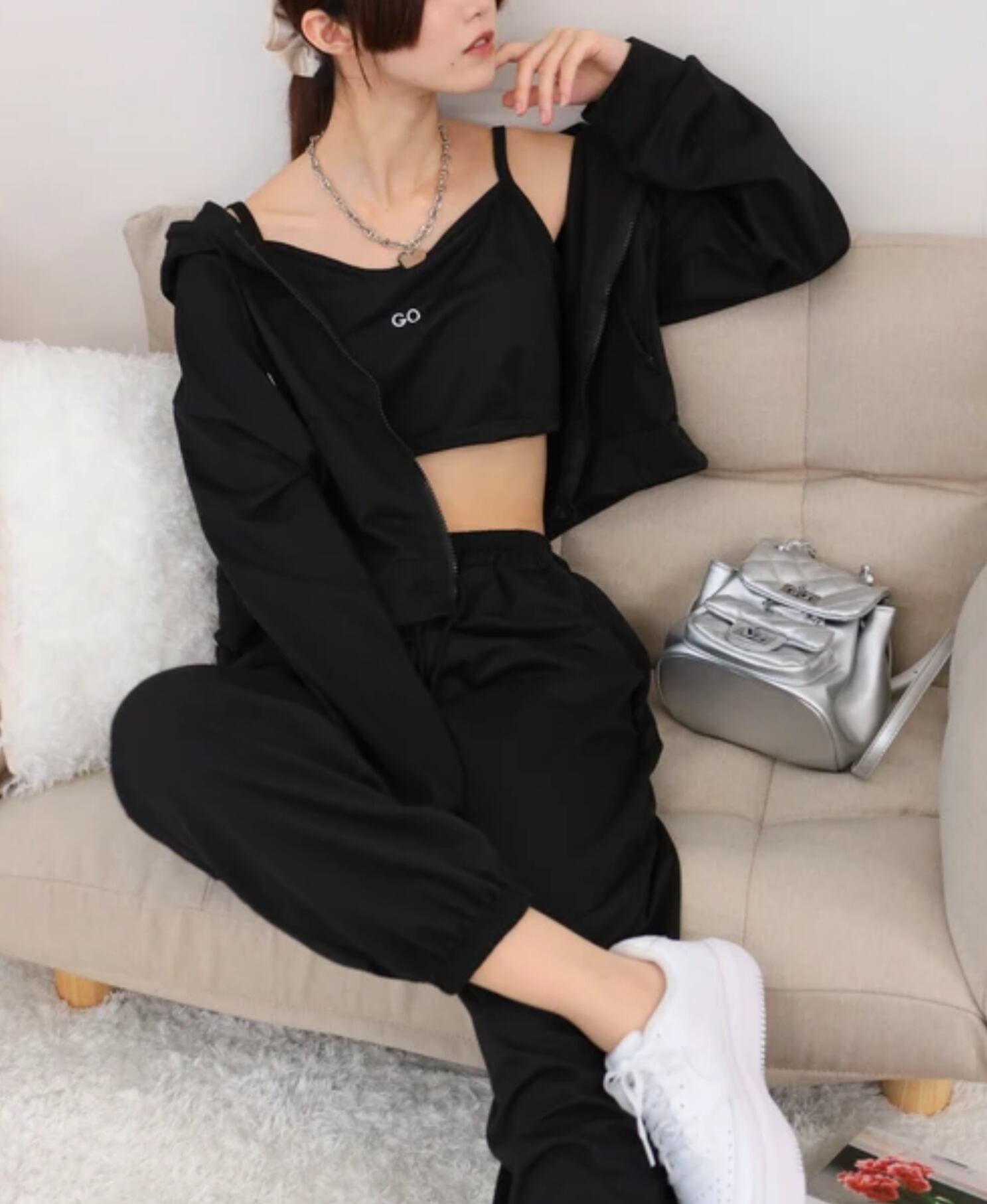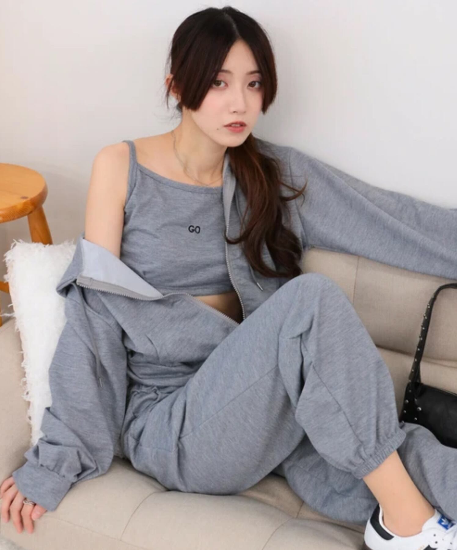 インナー、パーカー、ボトムスがセットになっているので、幅広い着回しができます。