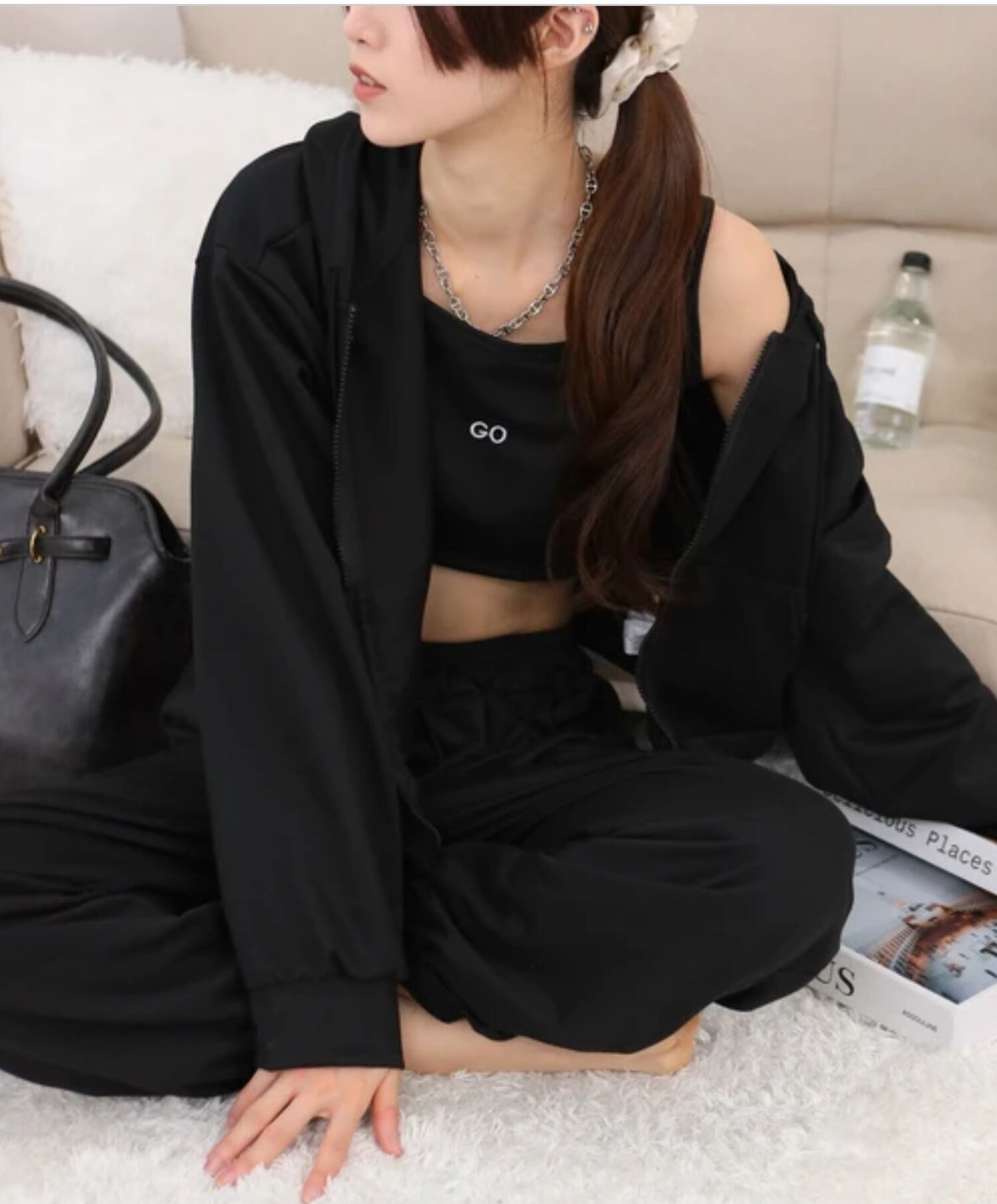 3点セット パーカー+クロップド丈キャミ+ロングパンツ