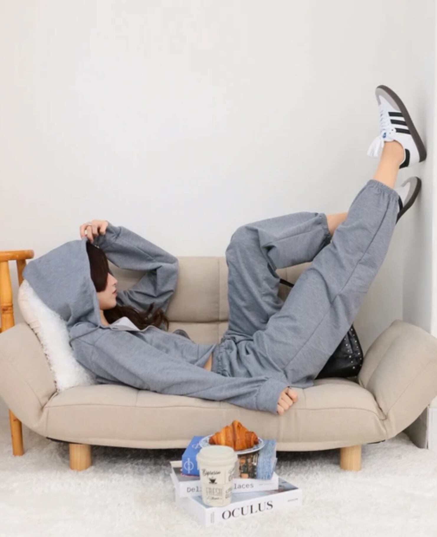 パーカーとパンツはゆったりしたサイズ感なので、快適に着用していただけます。