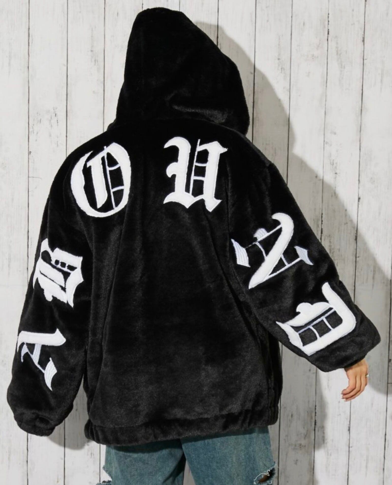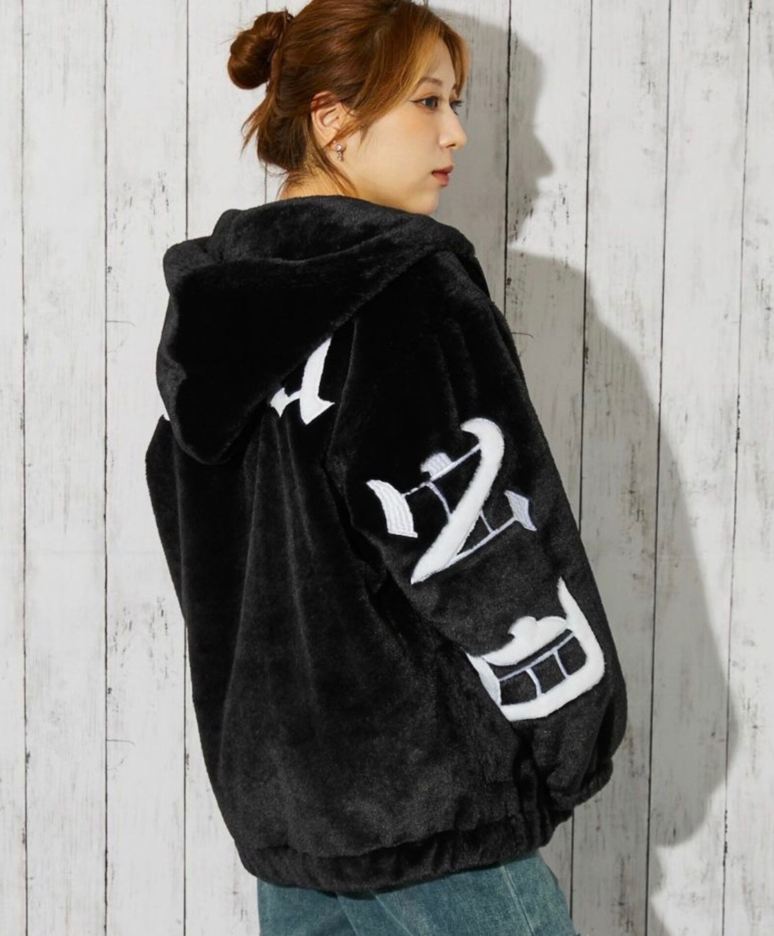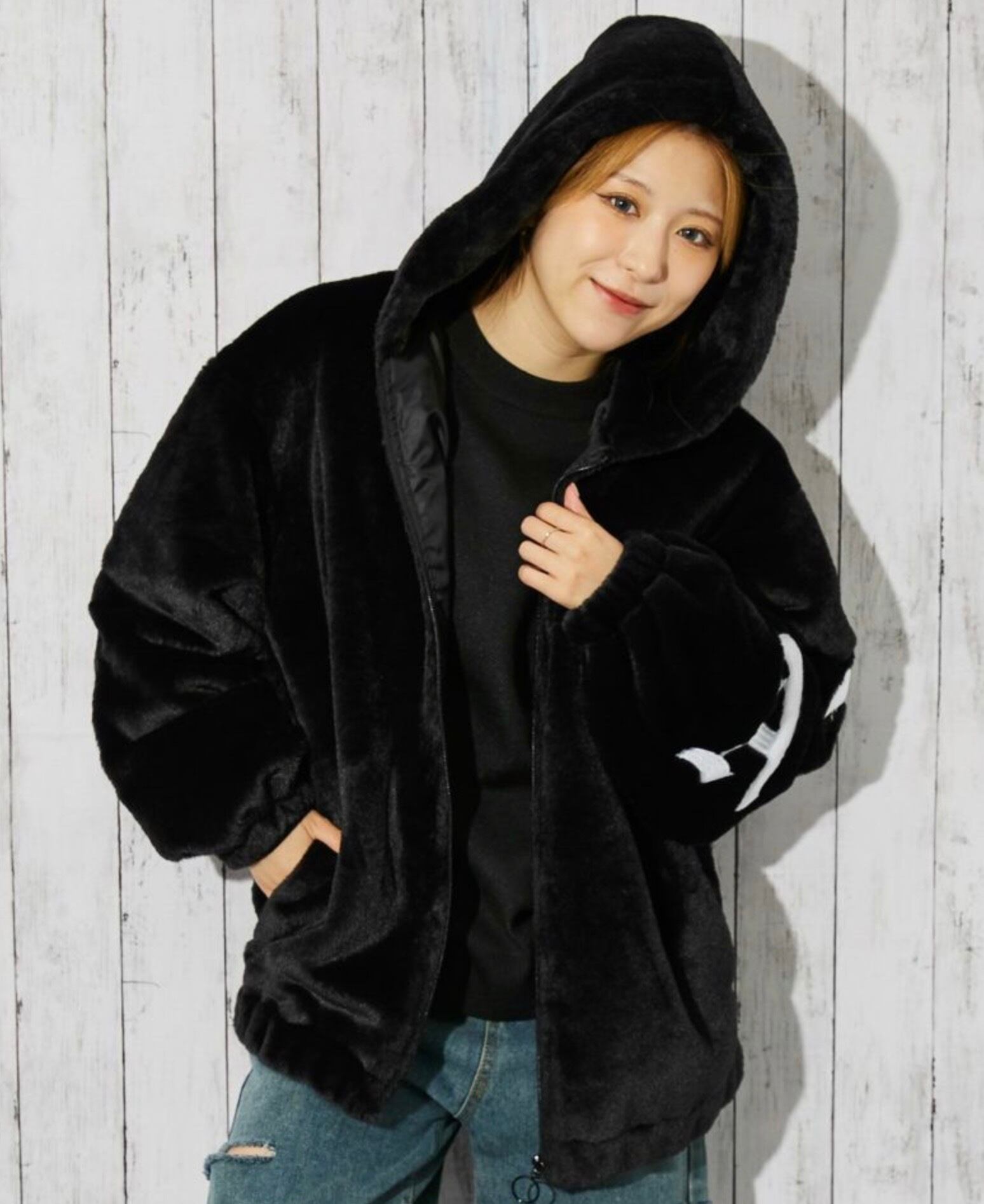 《ストリートムード全開? 存在感のあるバックロゴが映えるファーブルゾン》