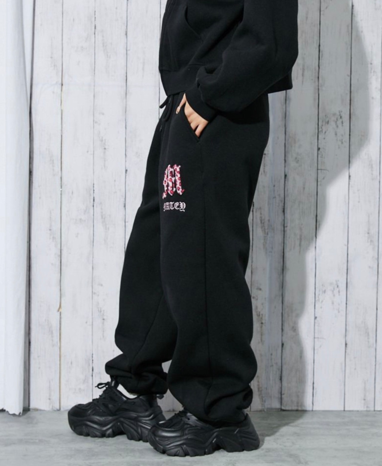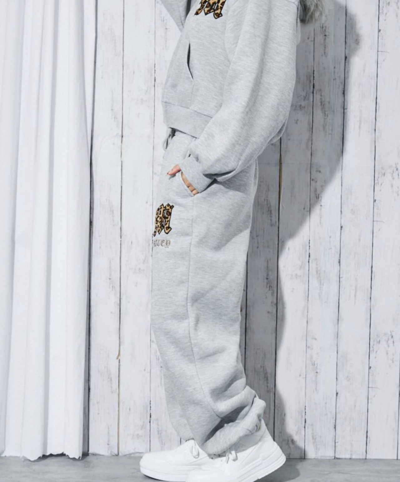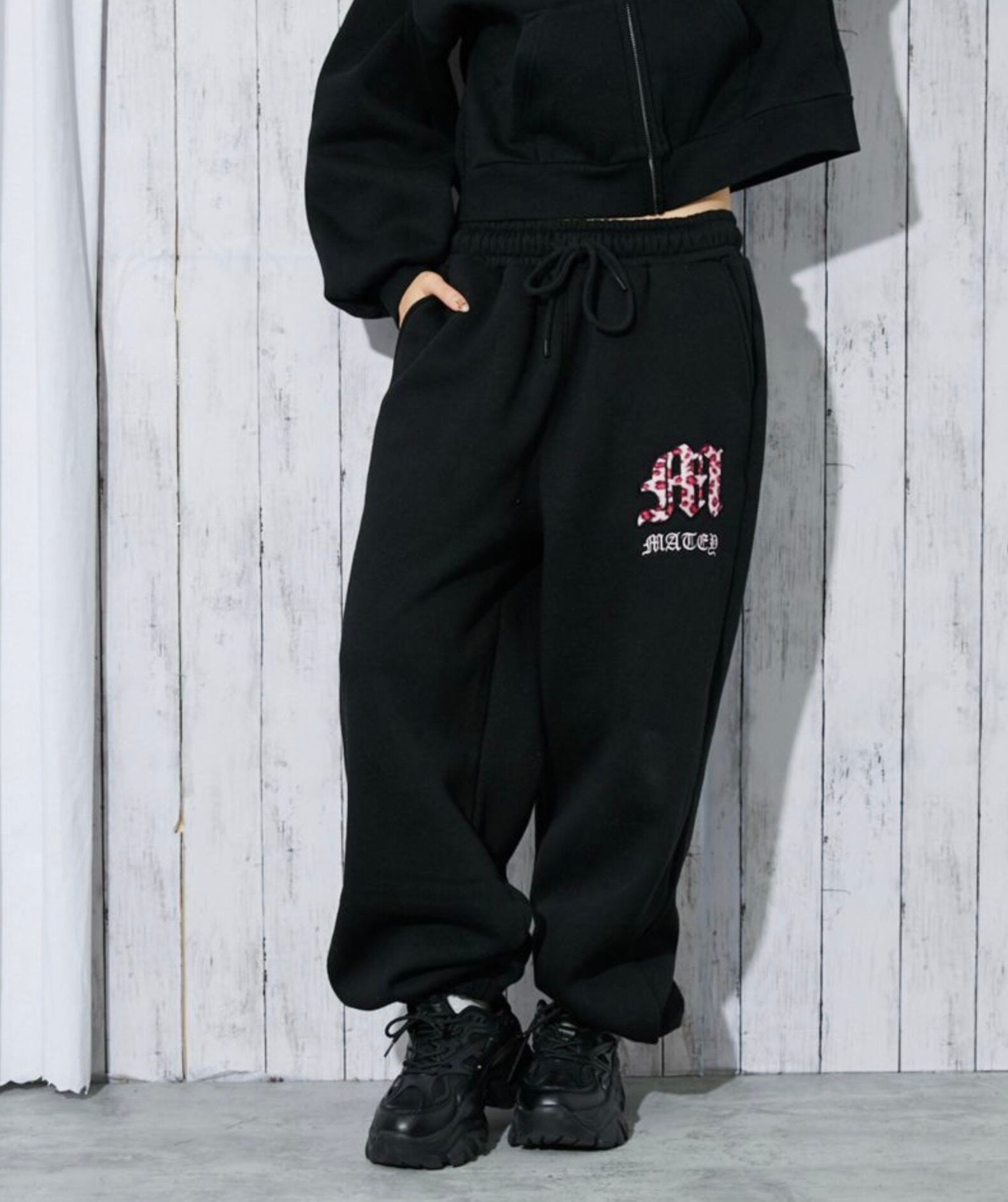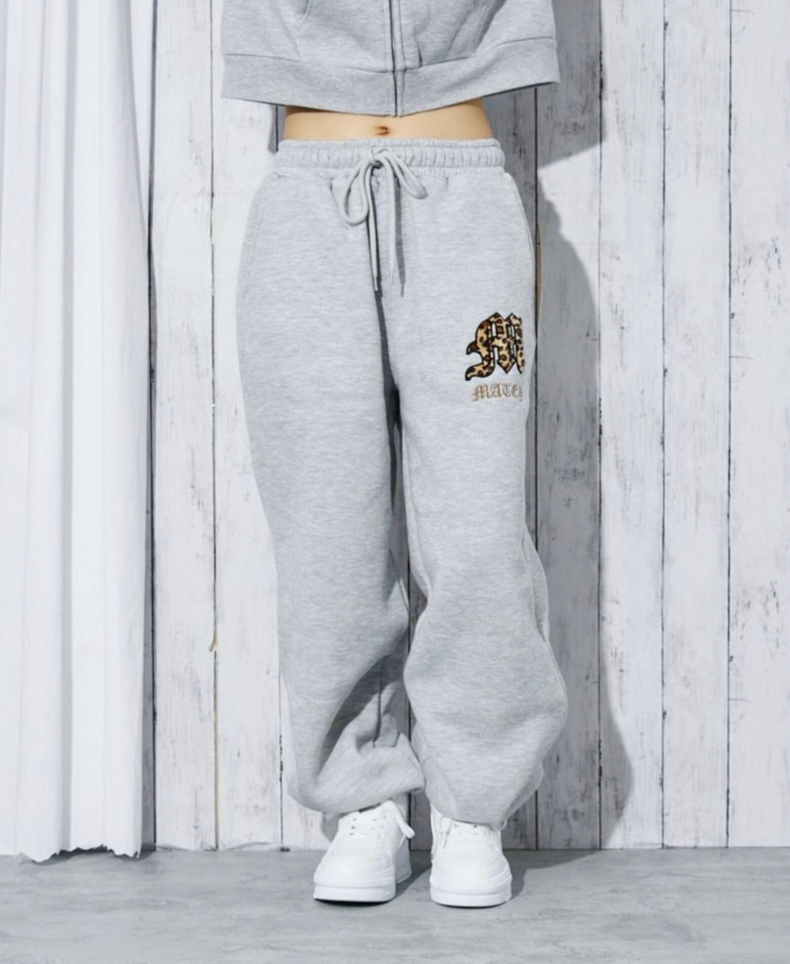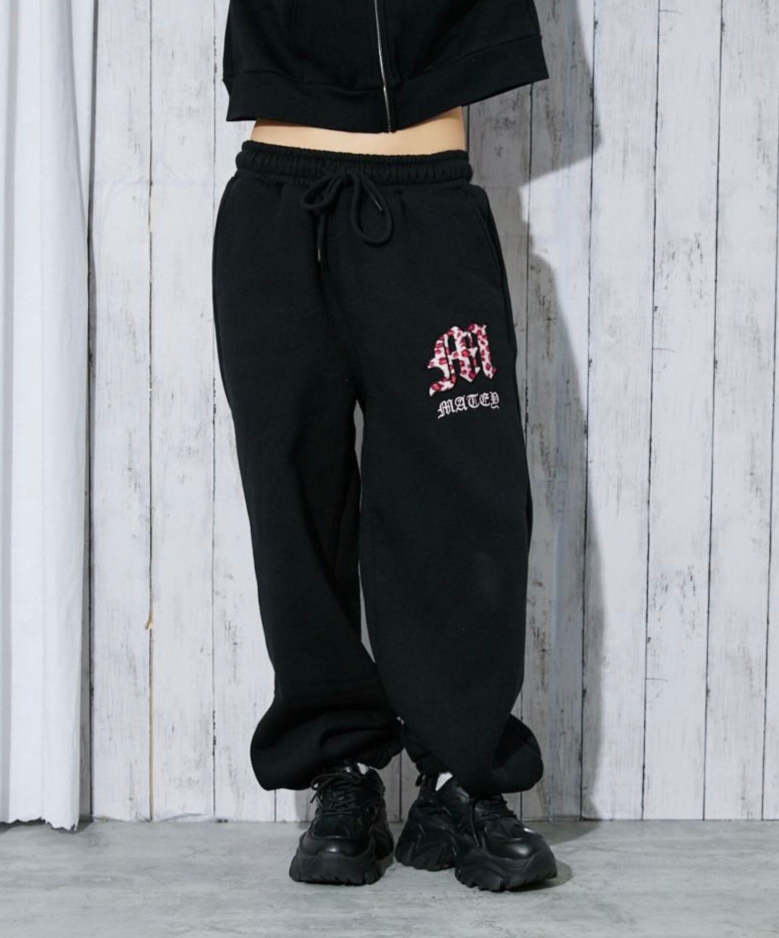 《レオパードロゴ×裏起毛》レディース スウェットジョガーパンツ