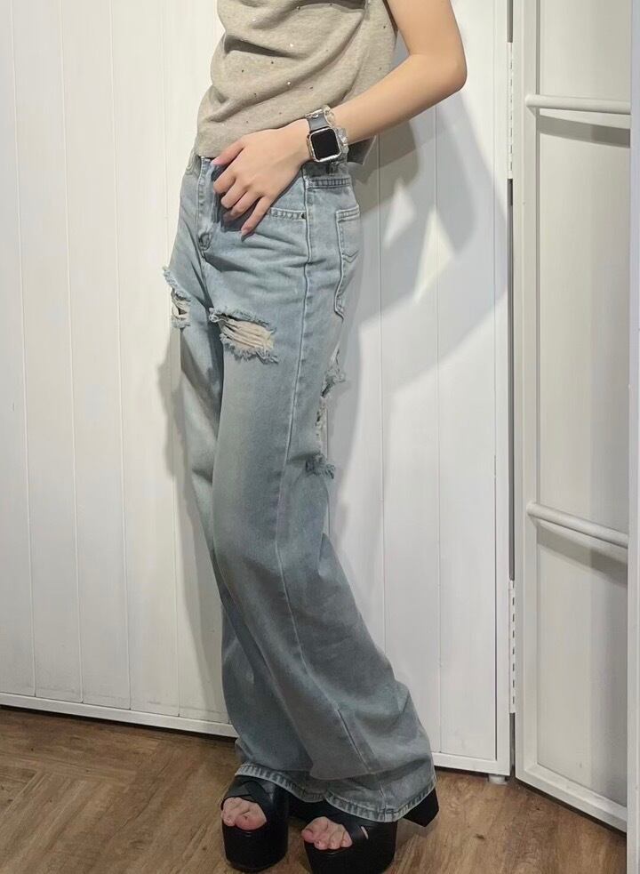 前後大胆なダメージがカジュアルコーデに程よい個性 をプラスします。
