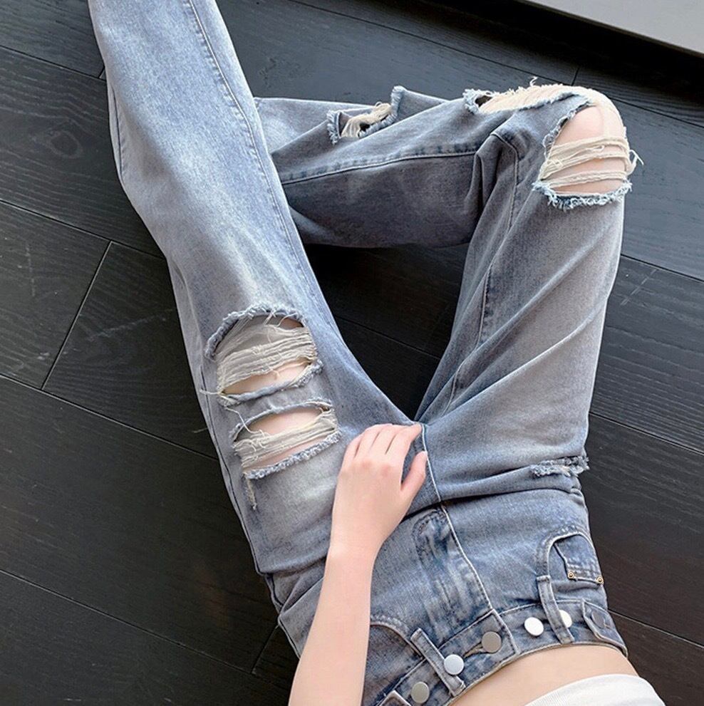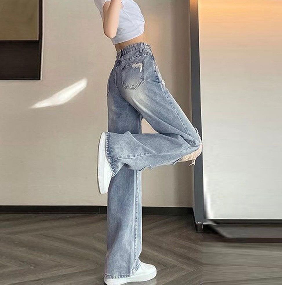 ユーズド加工デニム ストリート韓国春秋 アメカジデニム脚長