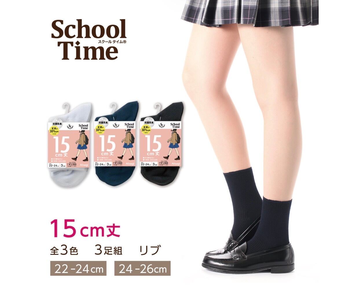 【スクールタイム】ショートクルー丈 15cm丈 3足組