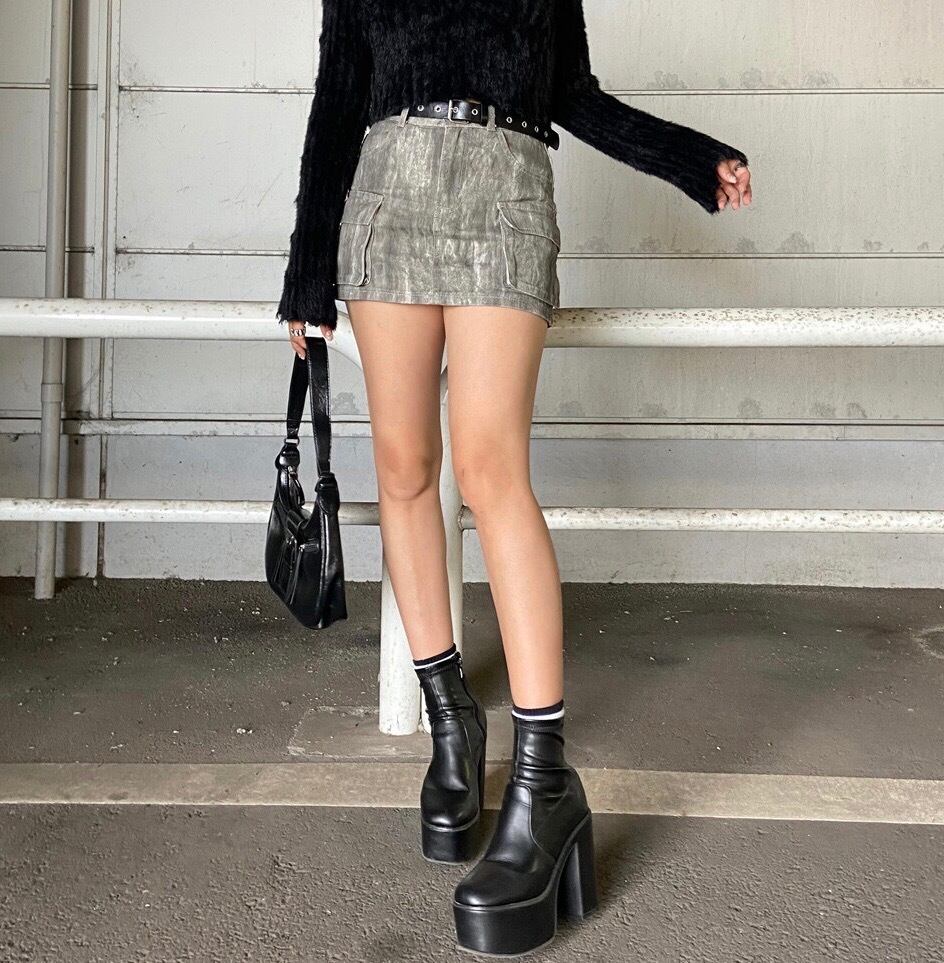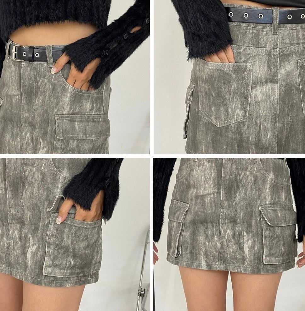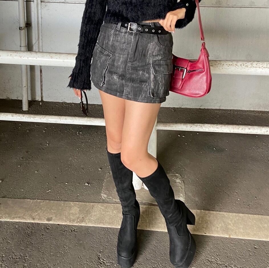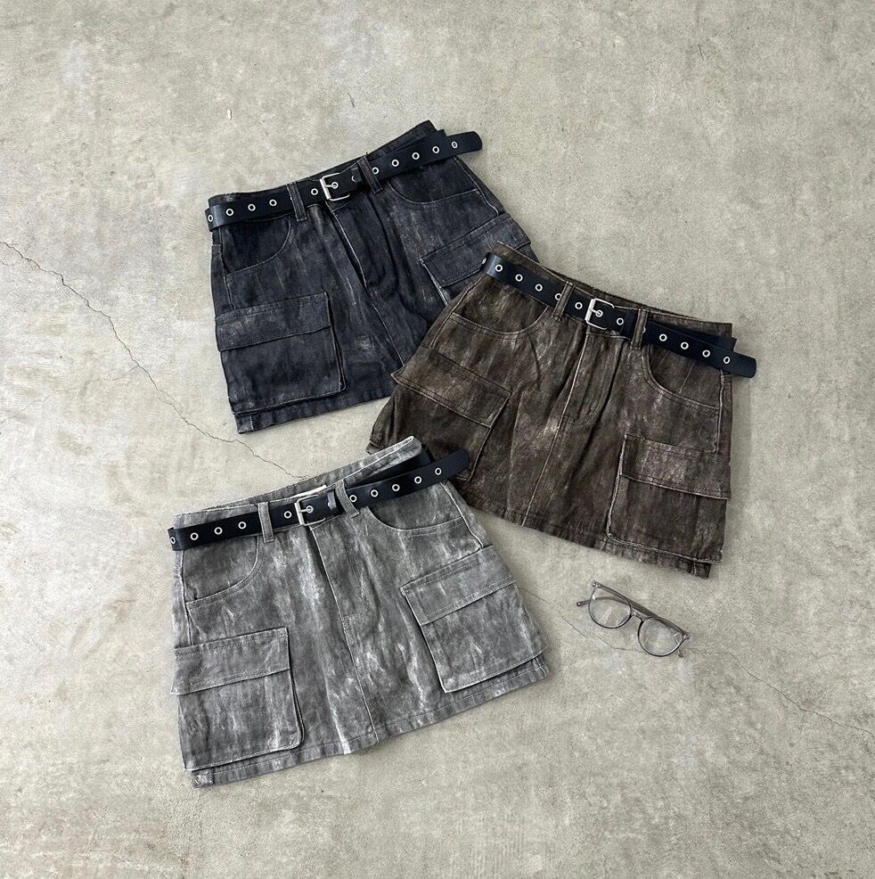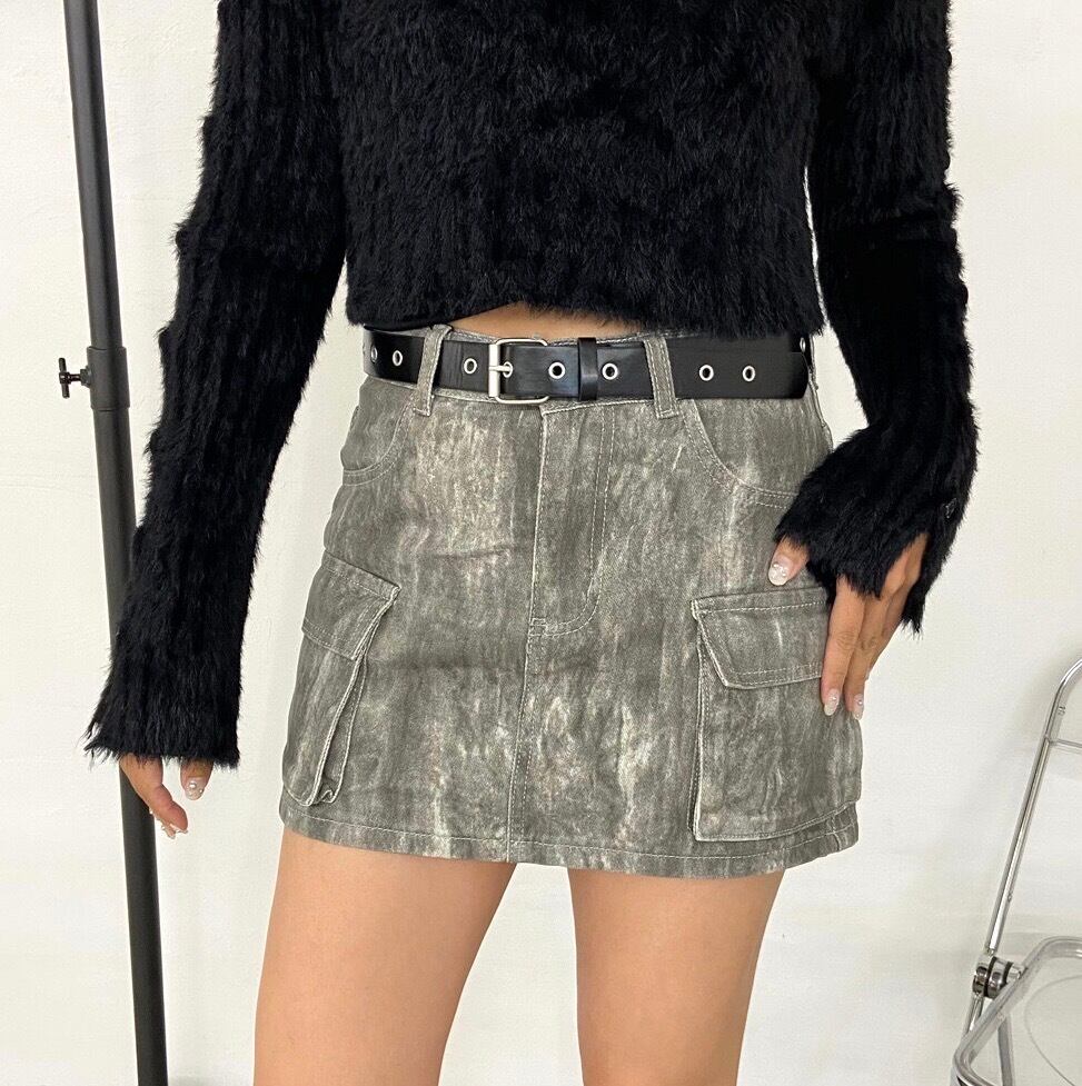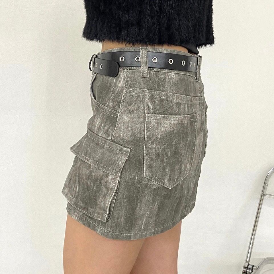 ムラカーゴミニスカート ニュアンス柄 ベルト付き