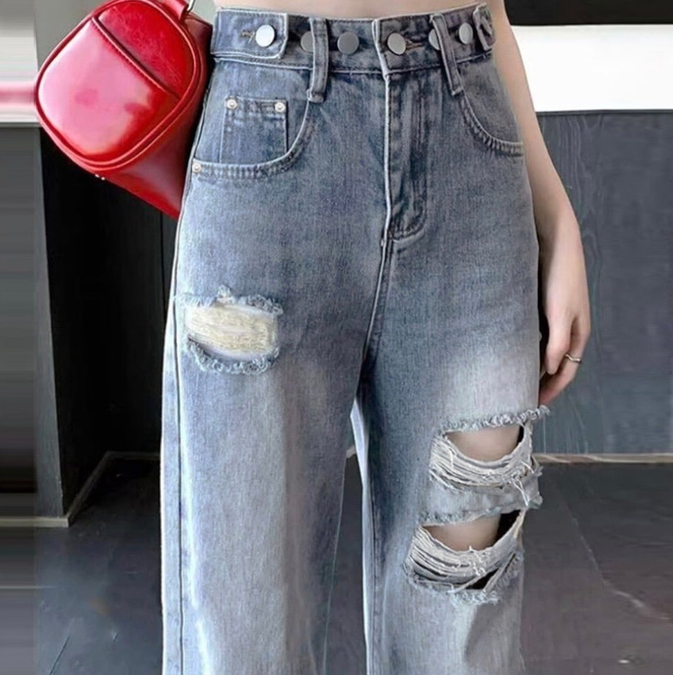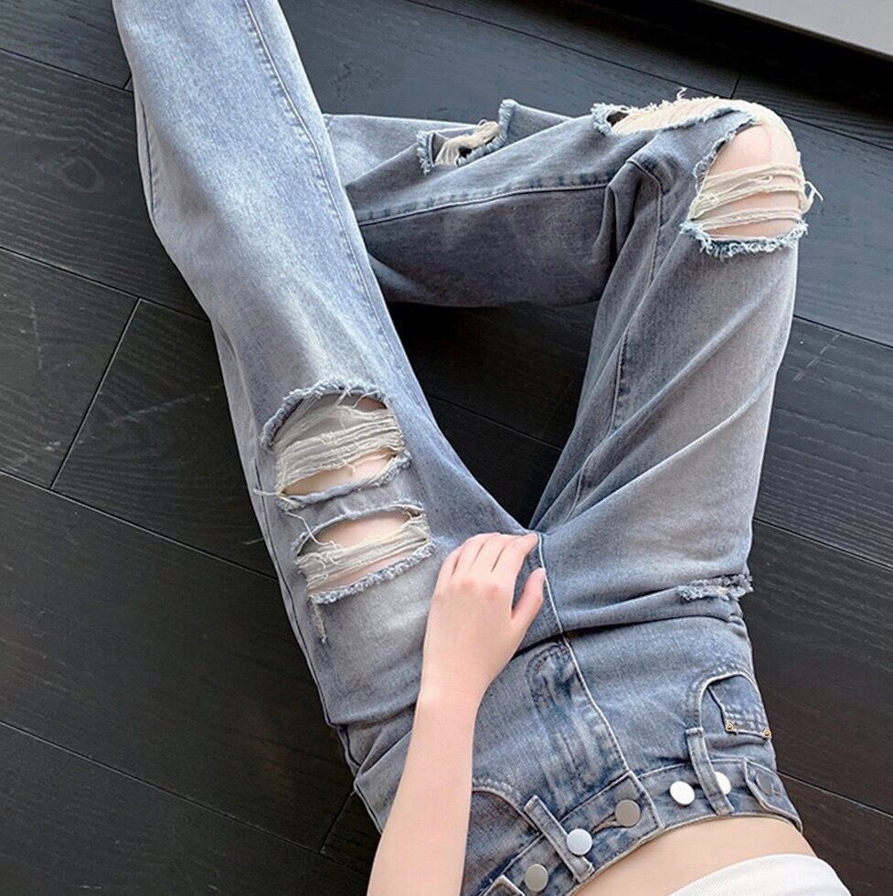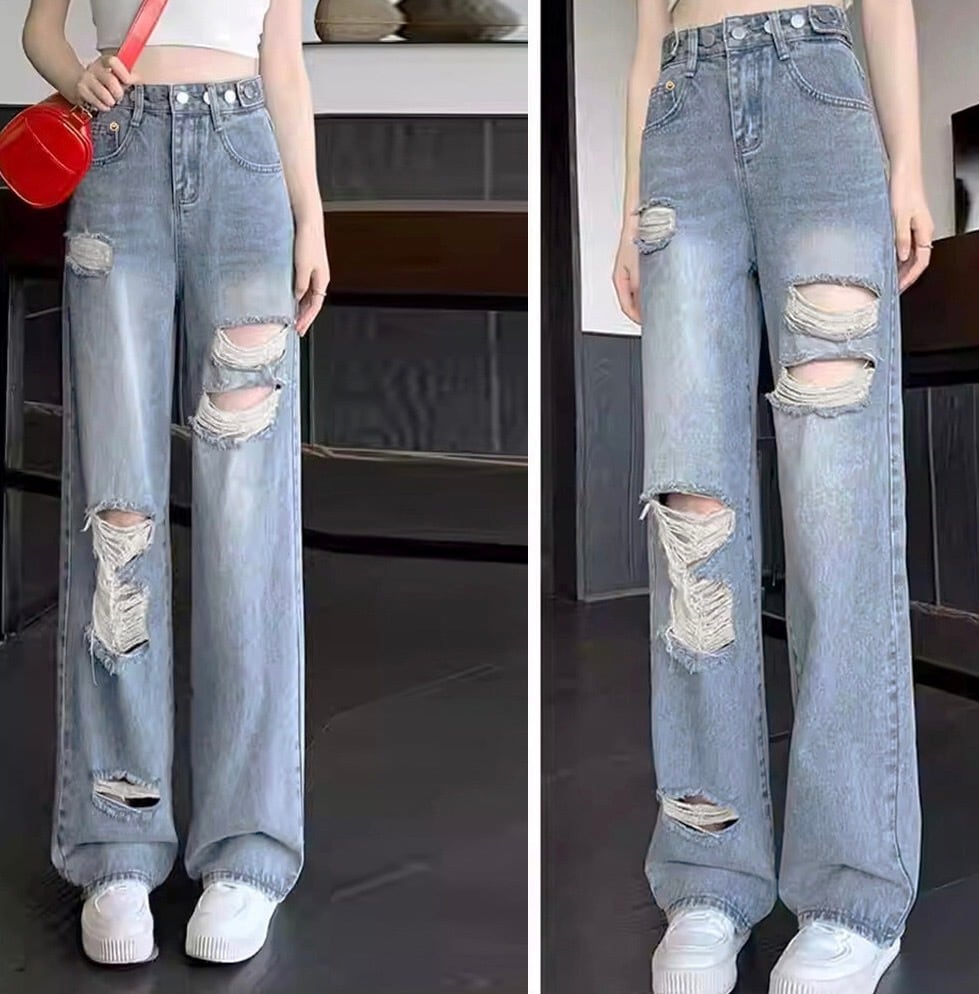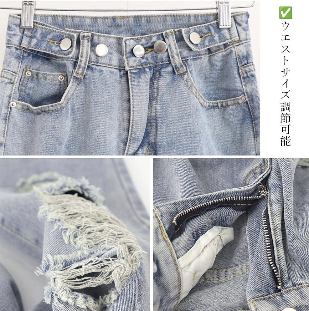 【ウエスト自由に調教可能】ダメージ デニムパンツ レディース