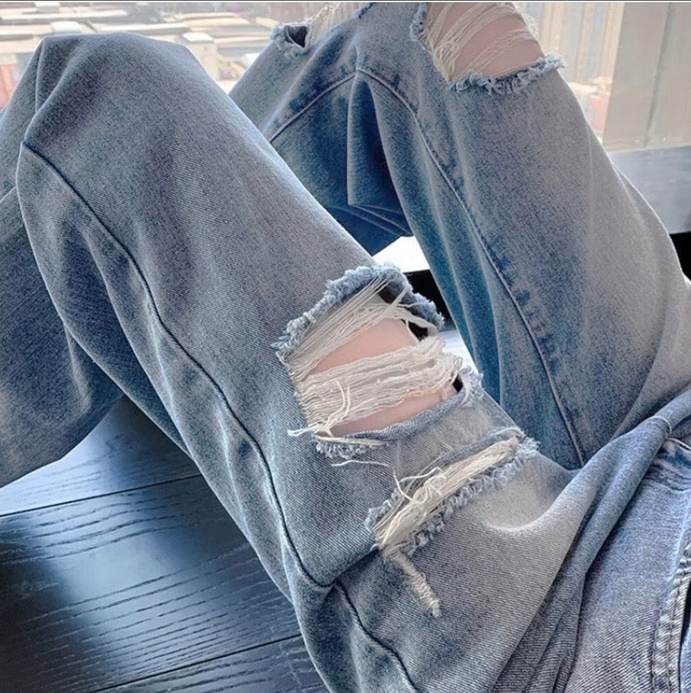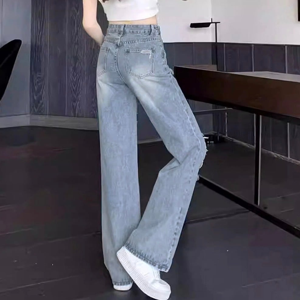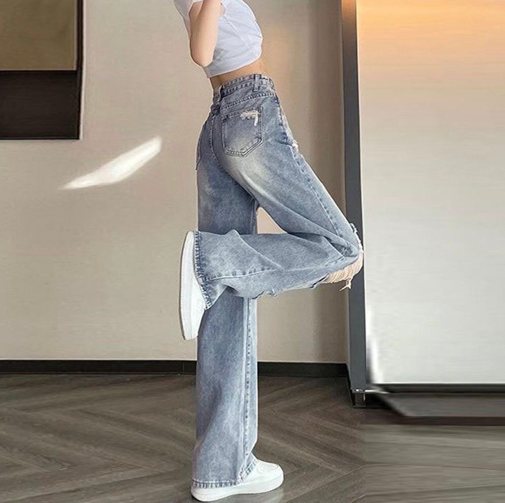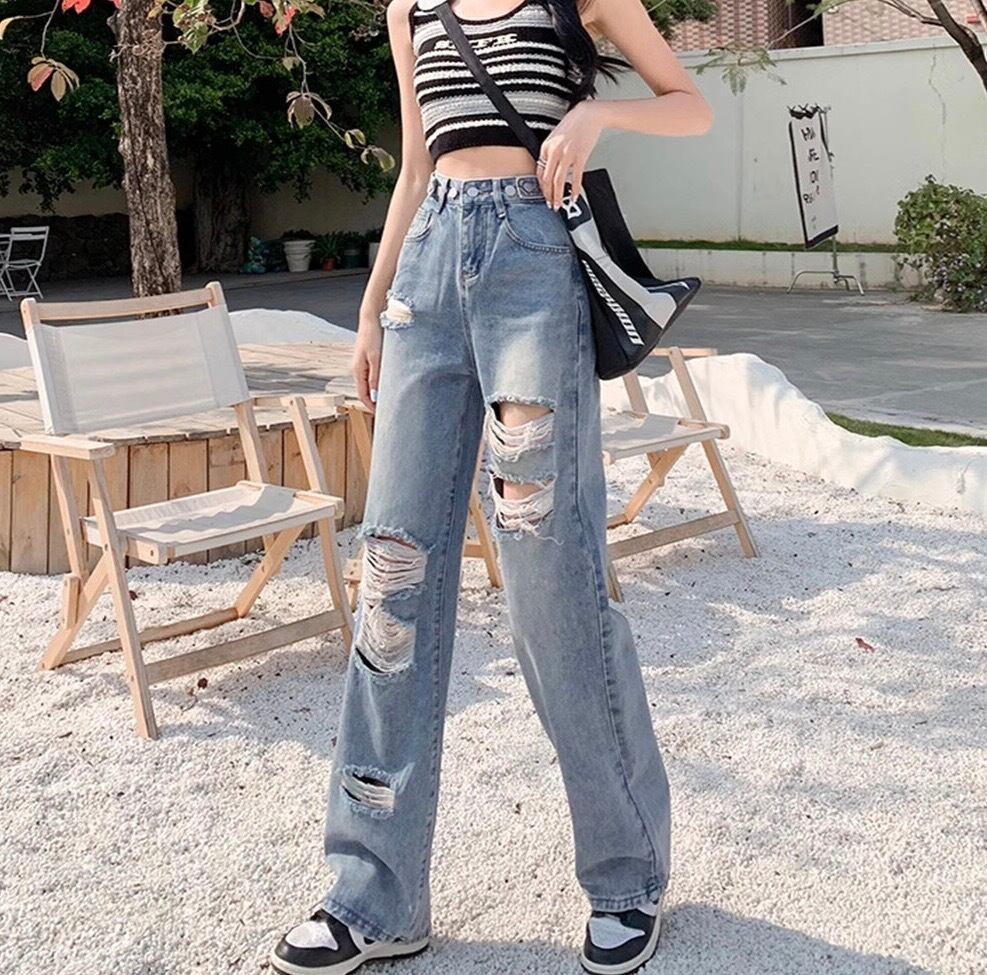 【ウエスト自由に調教可能】ダメージ デニムパンツ レディース