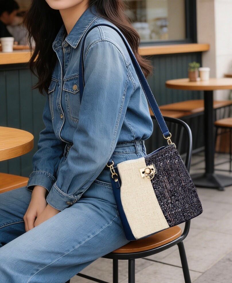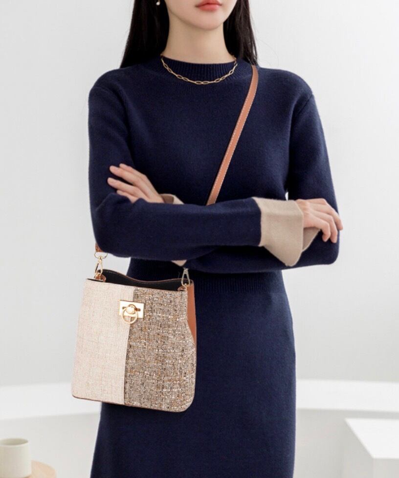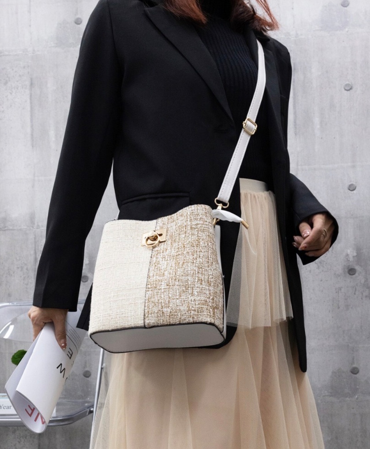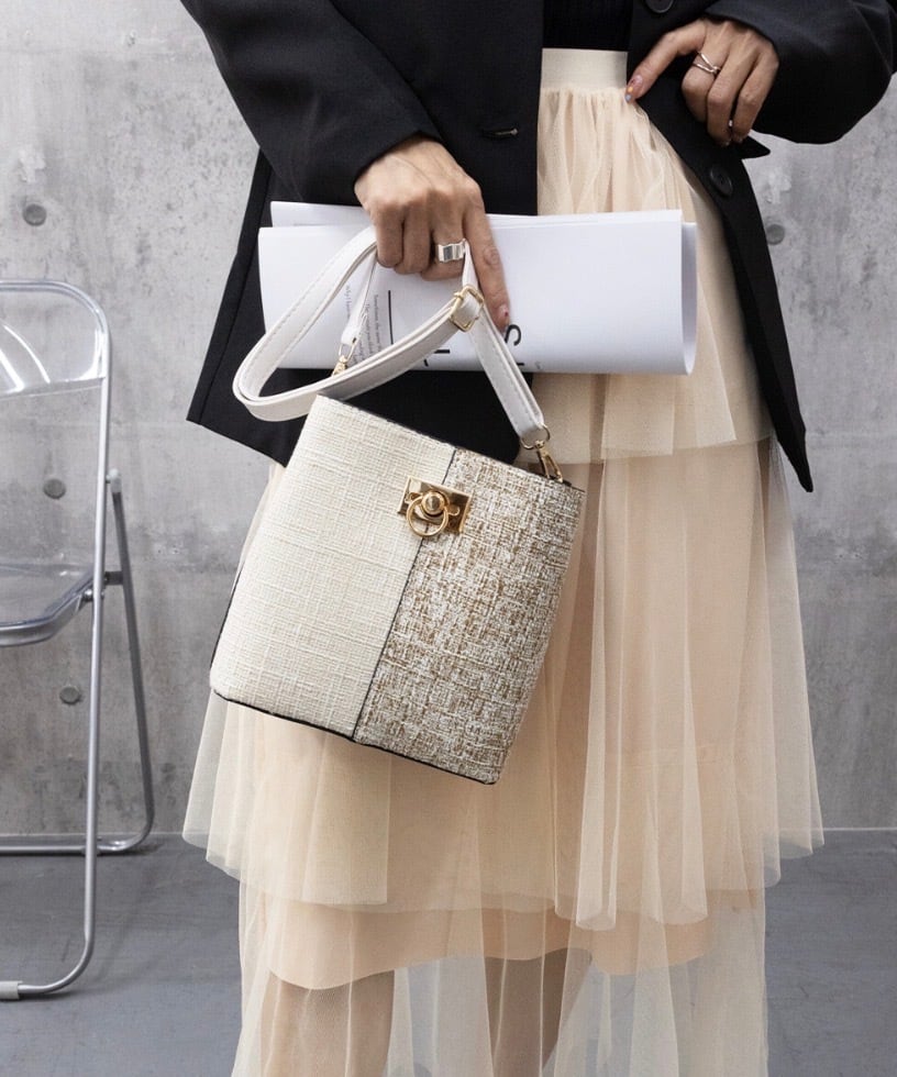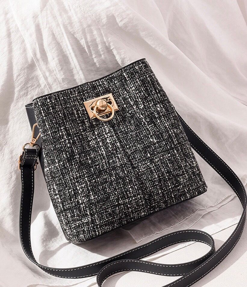 ツイード風でトレンド感たっぷりなミニショルダーバッグ