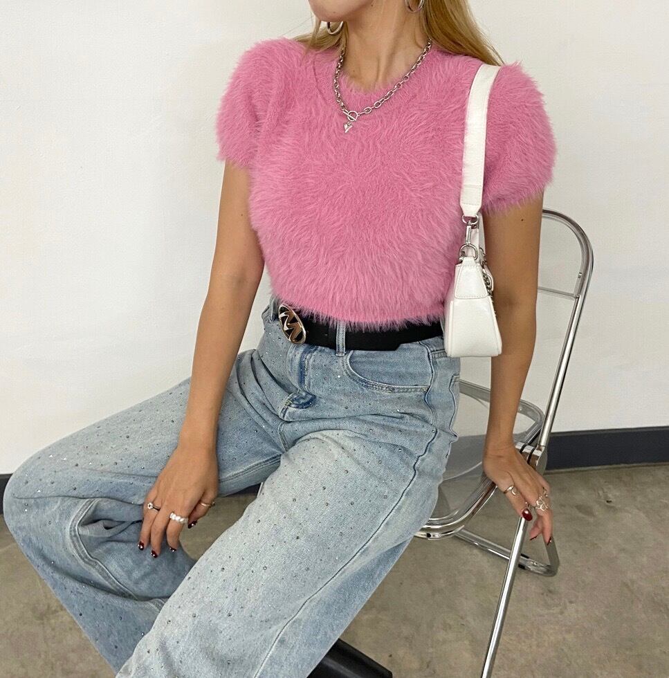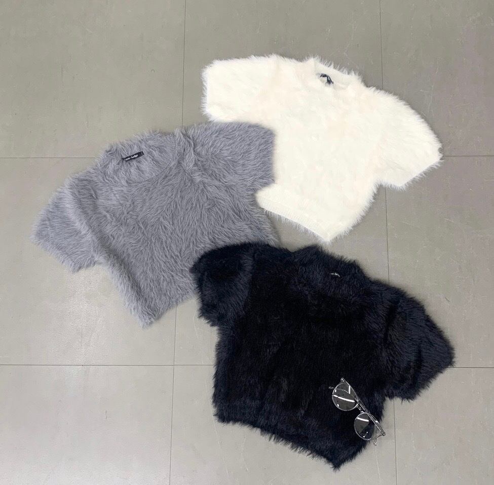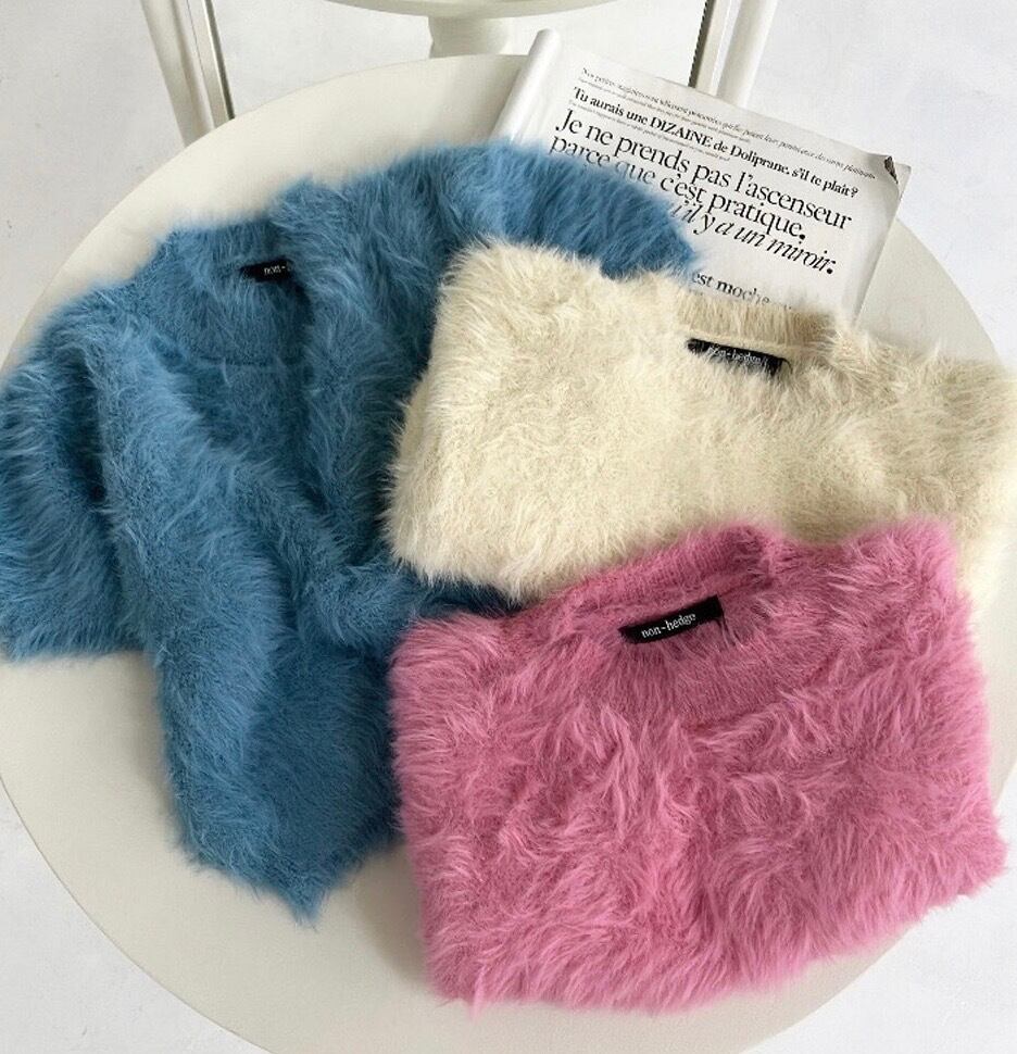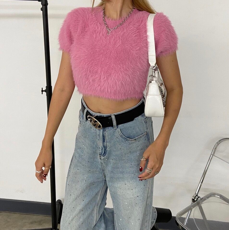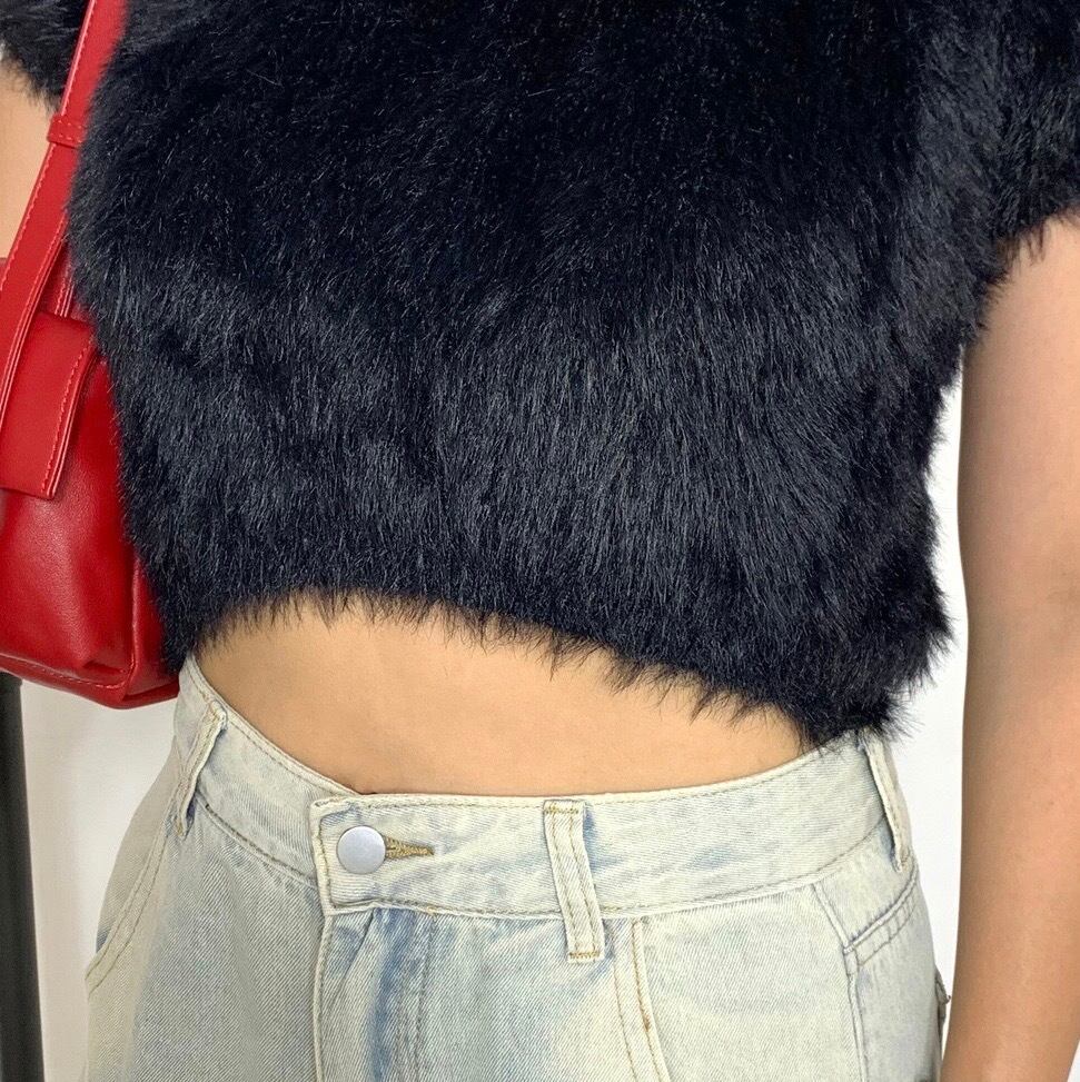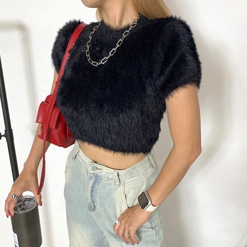 シャギーショートトップス フェザーニット ニットトップス