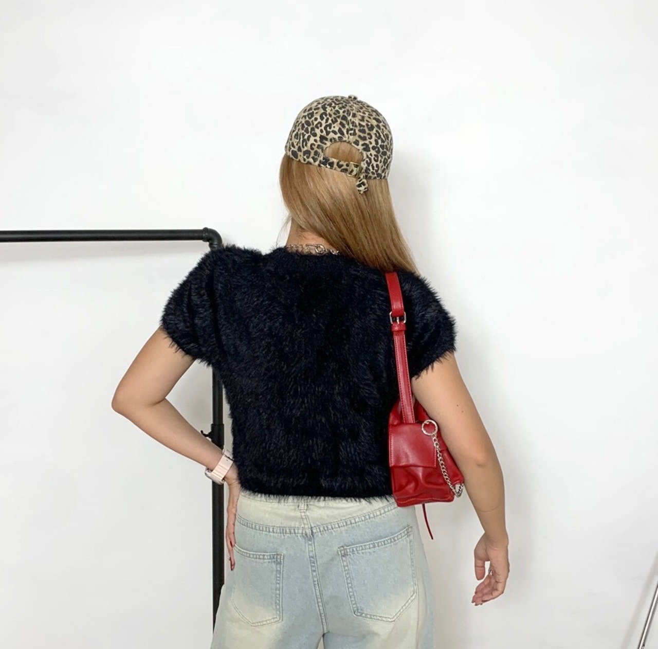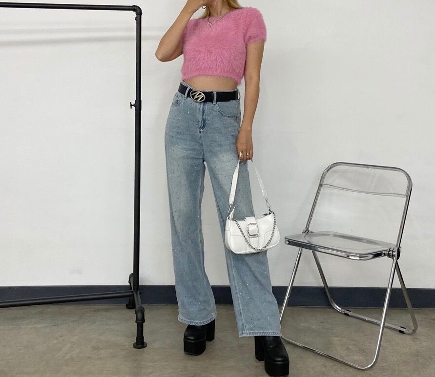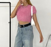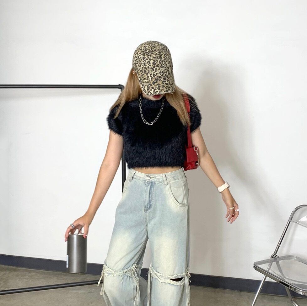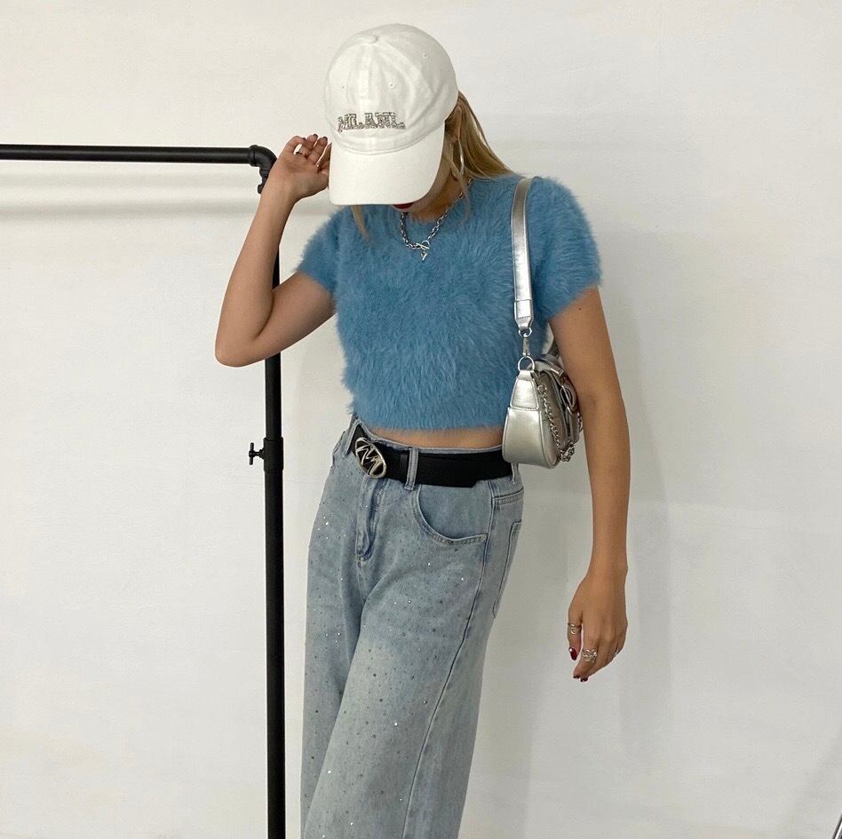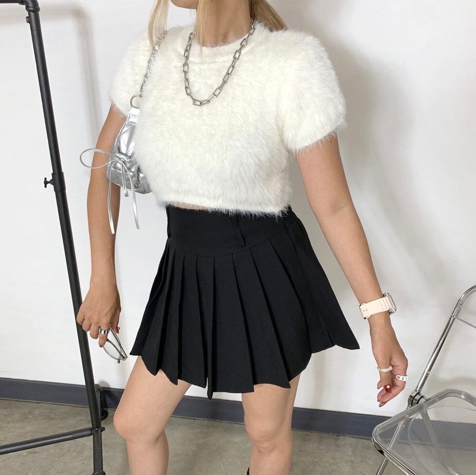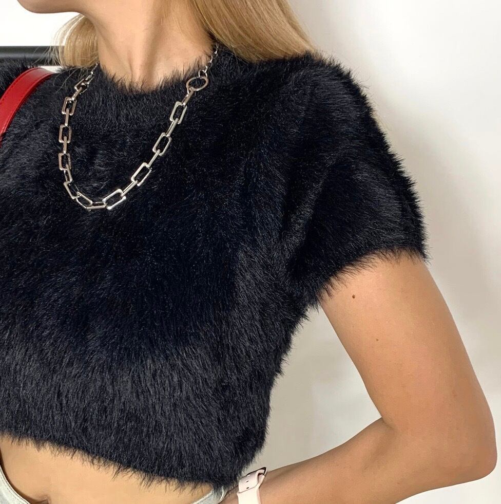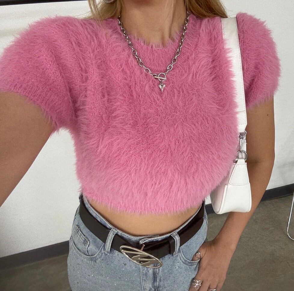 シャギーショートトップス フェザーニット ニットトップス