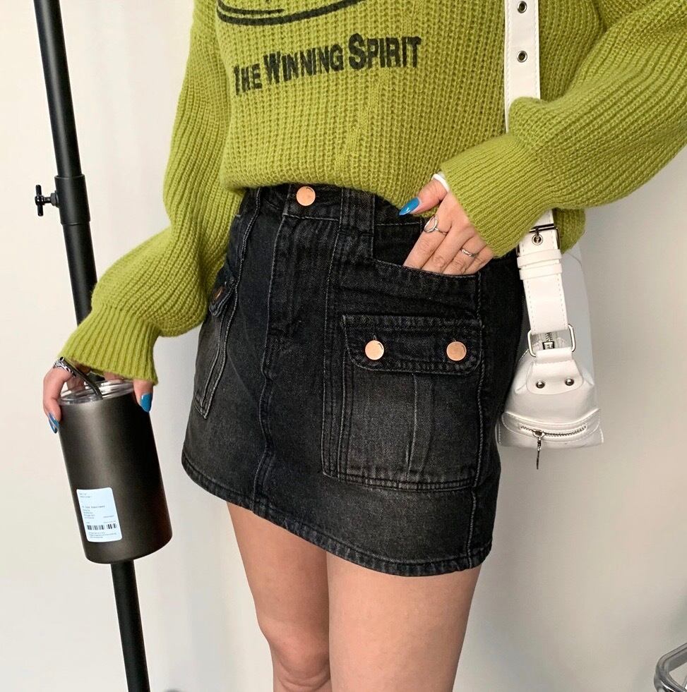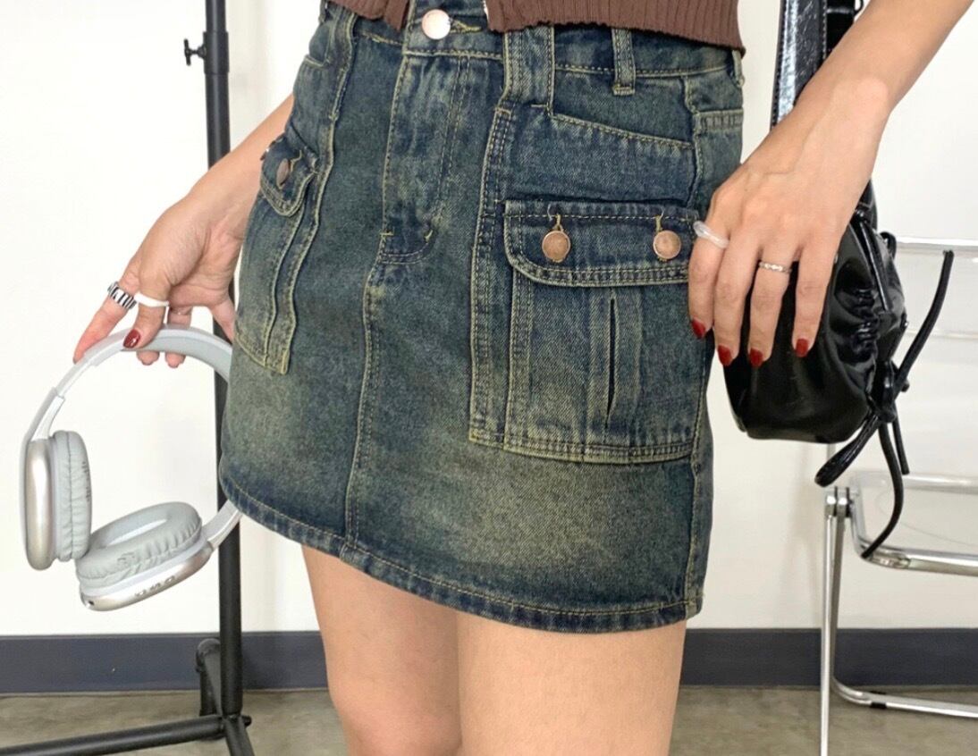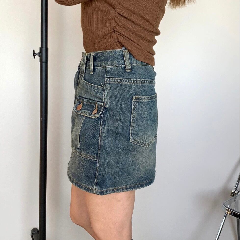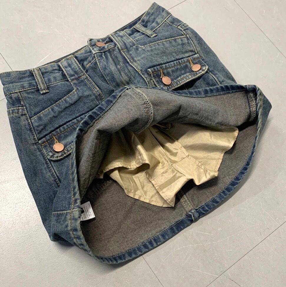 デニム前ポケットスカパン スカート デニムスカート インナー付き