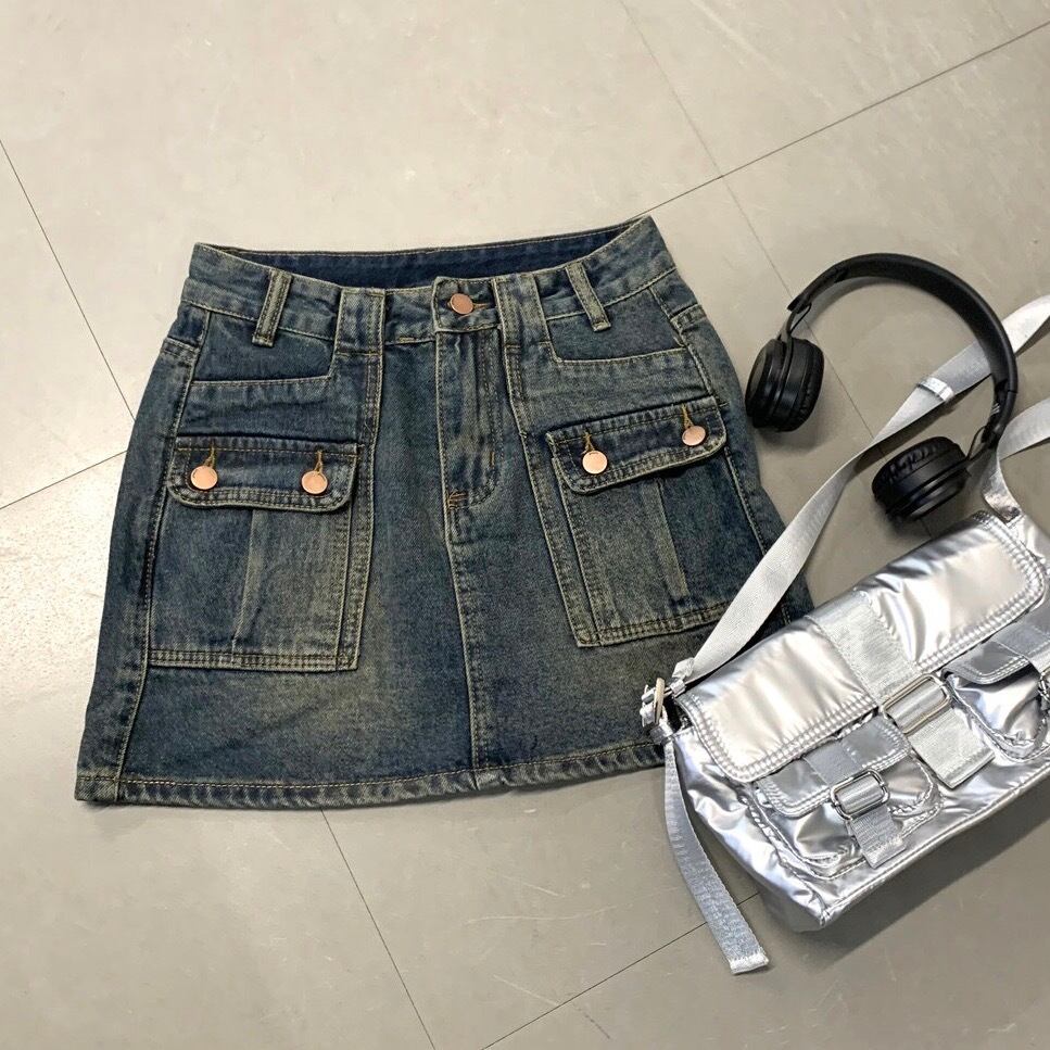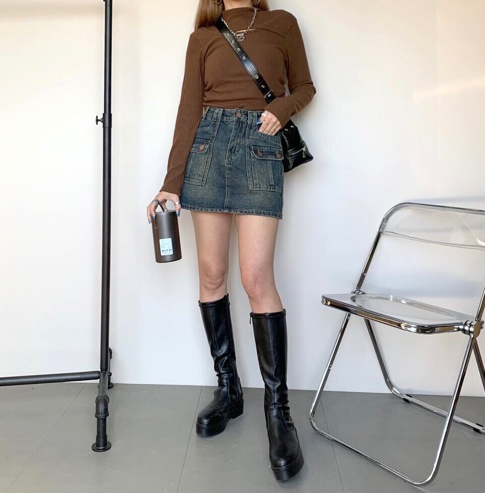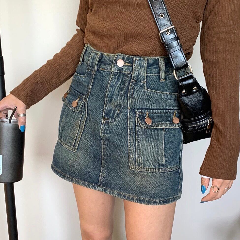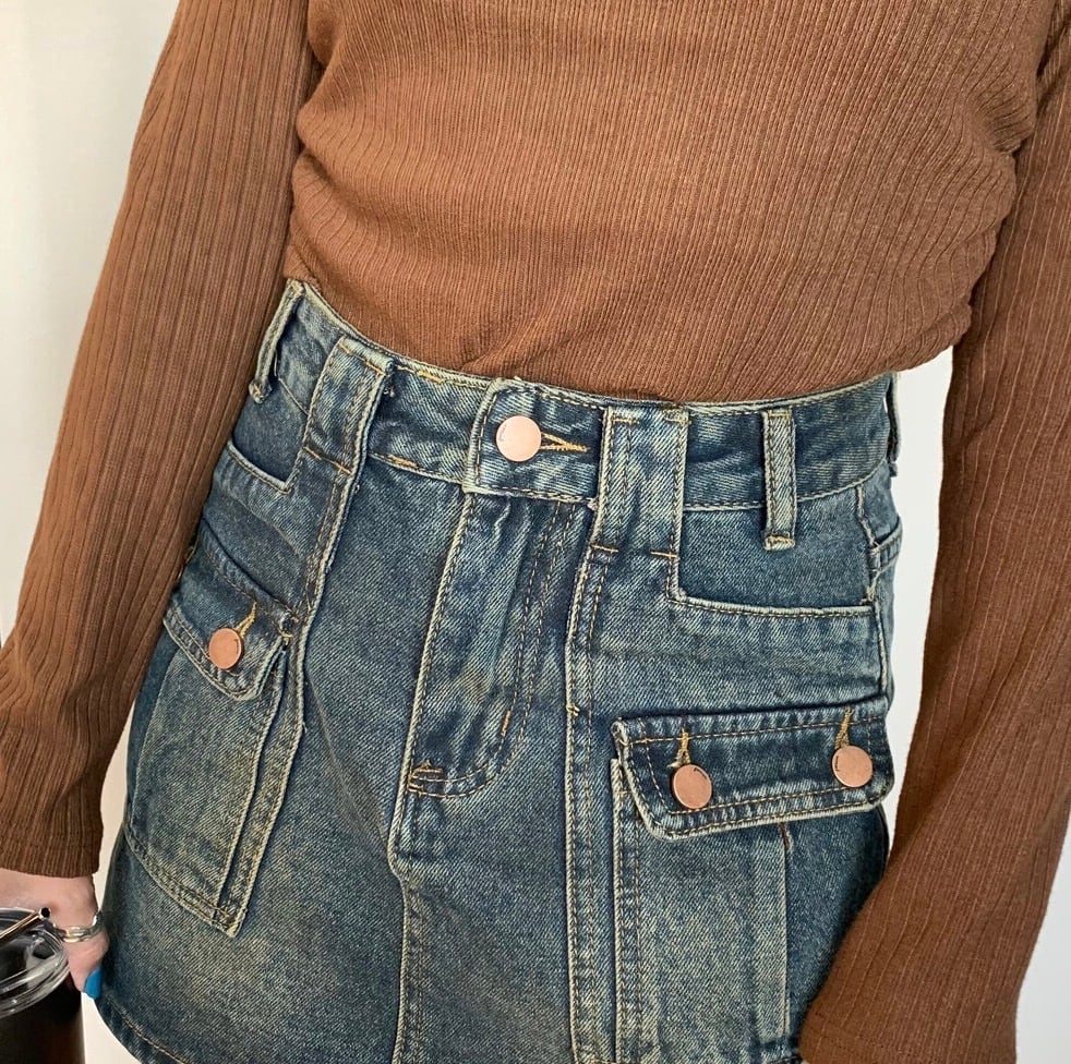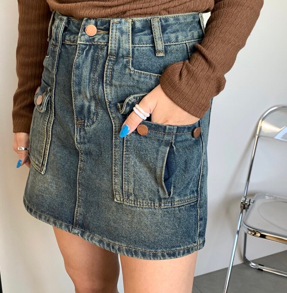 デニム前ポケットスカパン スカート デニムスカート インナー付き
