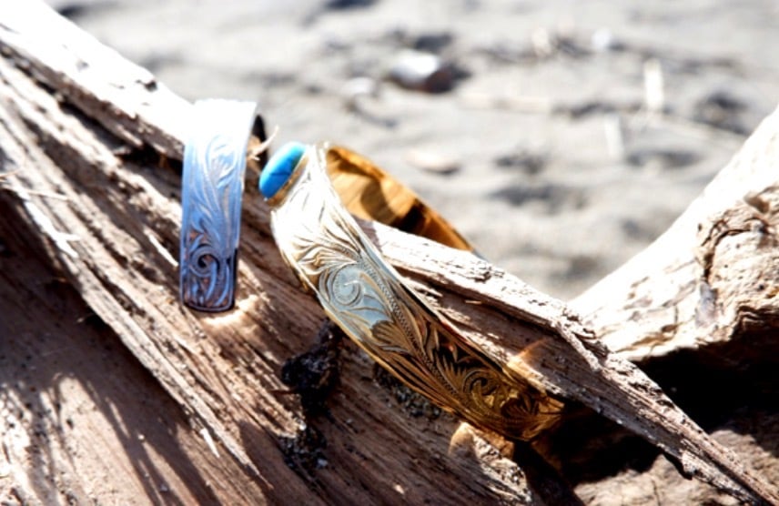 ハワイアンジュエリー バングル ターコイズ ブレスレット プルメリア サージカル ステンレス