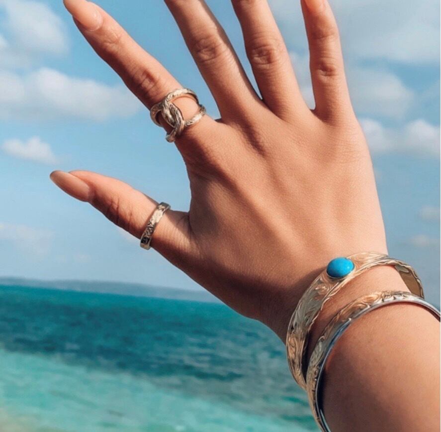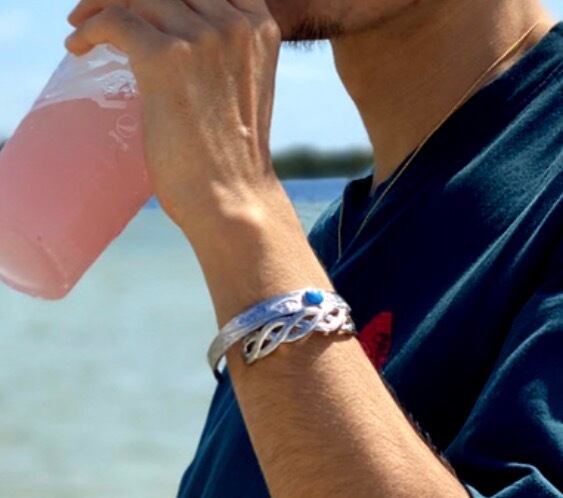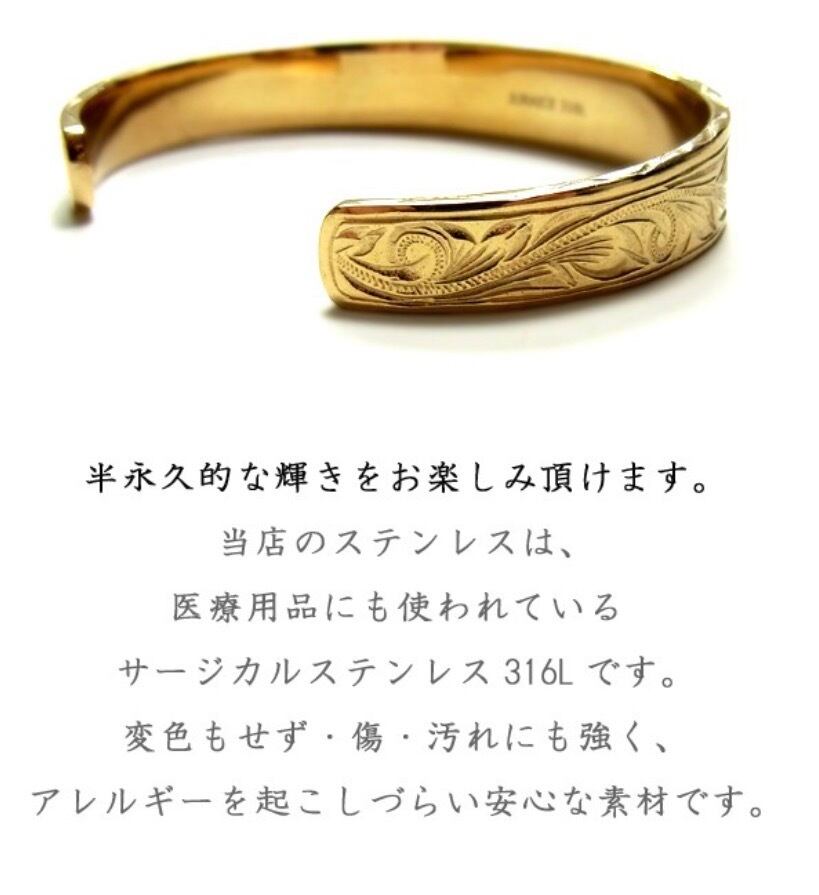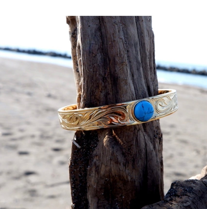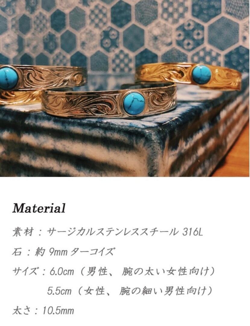 ハワイでは愛する人から想いを込めてハワイアンジュエリーを贈る習慣があります★遠い昔からハワイアンジュエリーは人々の大切な想いとともに身に着けられてきました。ただの飾りではなく、その時々の想いそれぞれのあたたかい気持ちを宿っているからこそ放つ本当の輝き、真実。使用貴金属サージカルステンレススチール316L石約9.0mmターコイズサイズ 6.0cm(男性、腕の太い女性向け)5.5cm(女性、腕の細い男性向け)太さ:約10.5mmステンレススチール医療用品にも使われているサージカルステンレス316Lです。変色もせず・傷・汚れにも強く、アレルギーを起こしづらい安心な素材です。