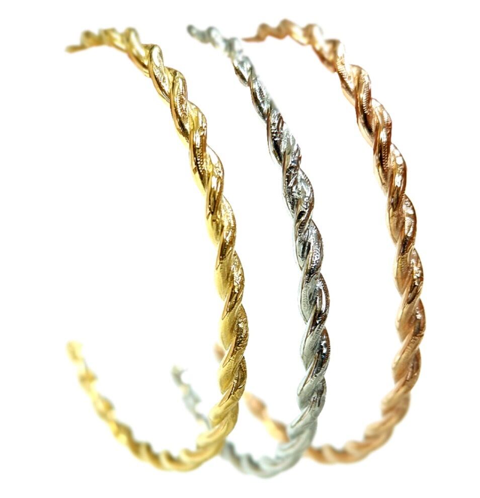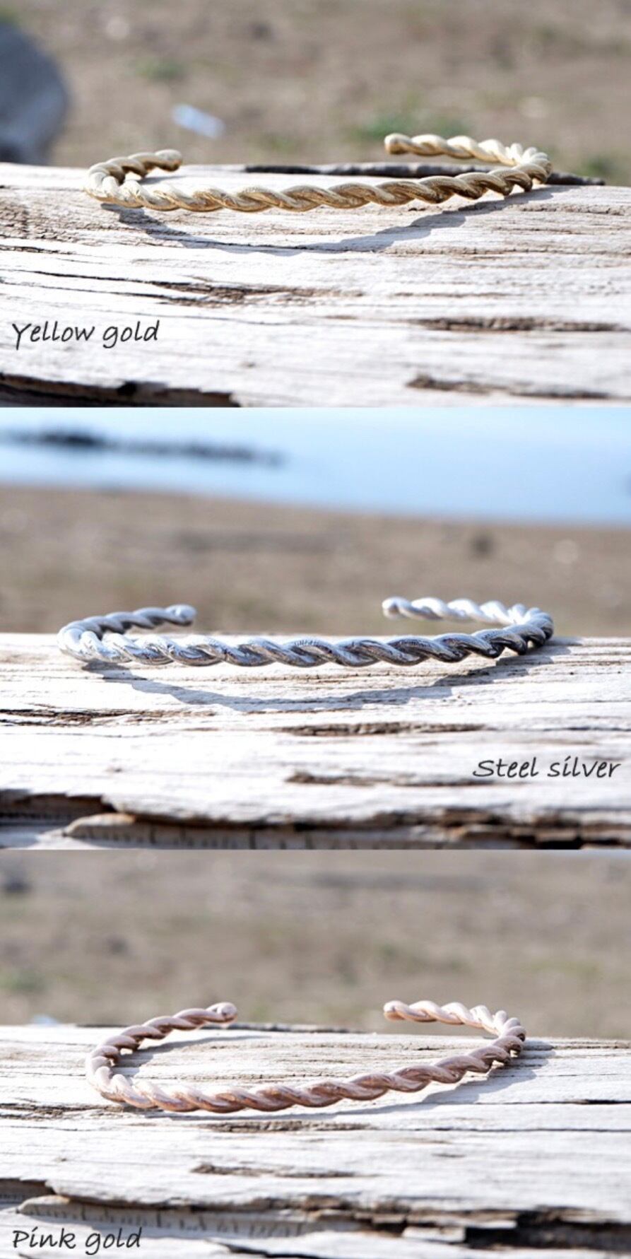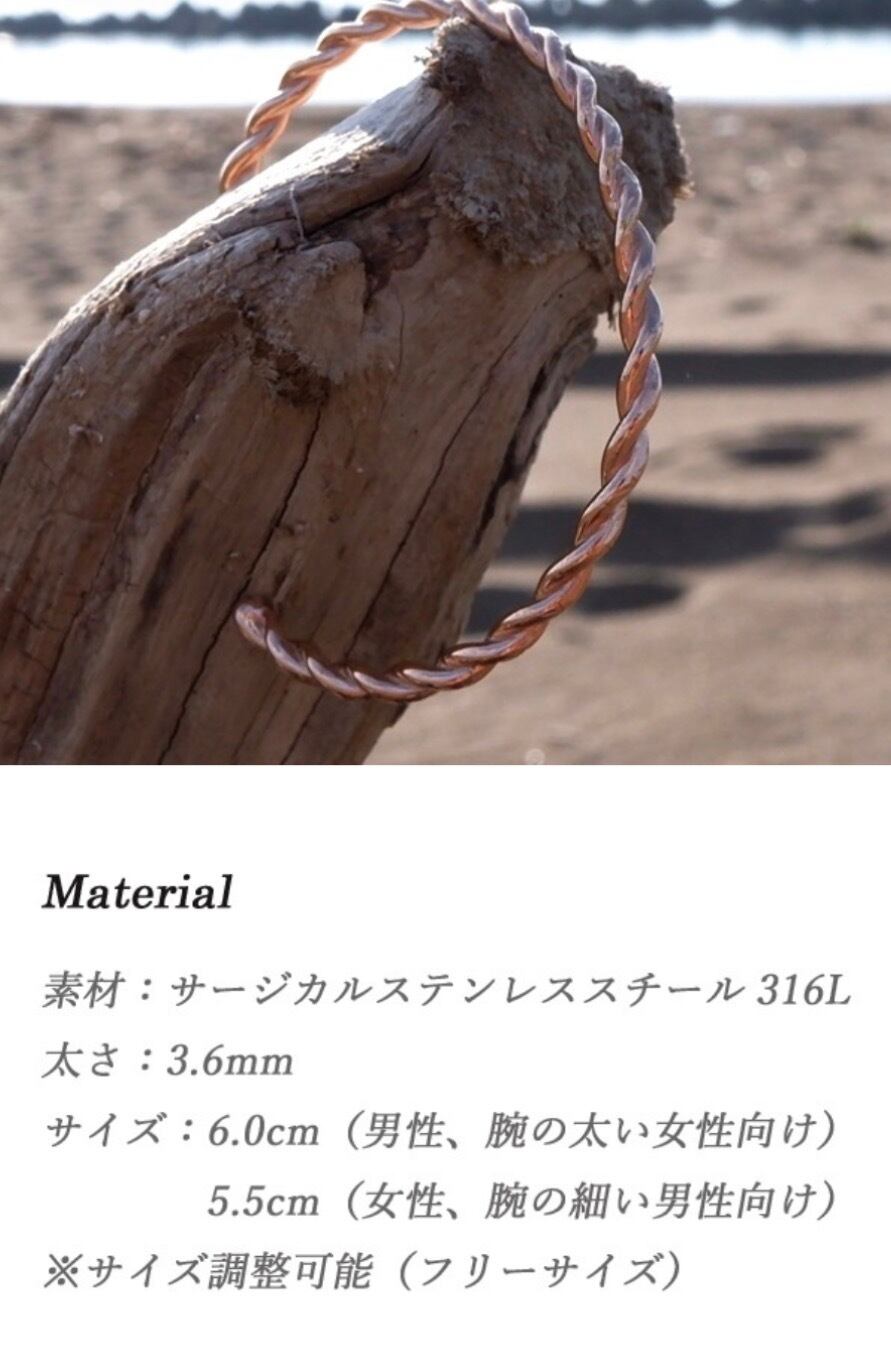 使用貴金属サージカルステンレススチール316L/K14イエローゴールドコーティング/ピンクゴールドサイズ 6.0cm(男性、腕の太い女性向け)5.5cm(女性、腕の細い男性向け)※サイズ調整可能(フリーサイズ)太さ:約3.6mmステンレススチール医療用品にも使われているサージカルステンレス316Lです。変色もせず・傷・汚れにも強く、アレルギーを起こしづらい安心な素材です。