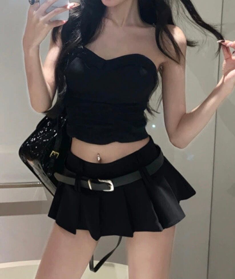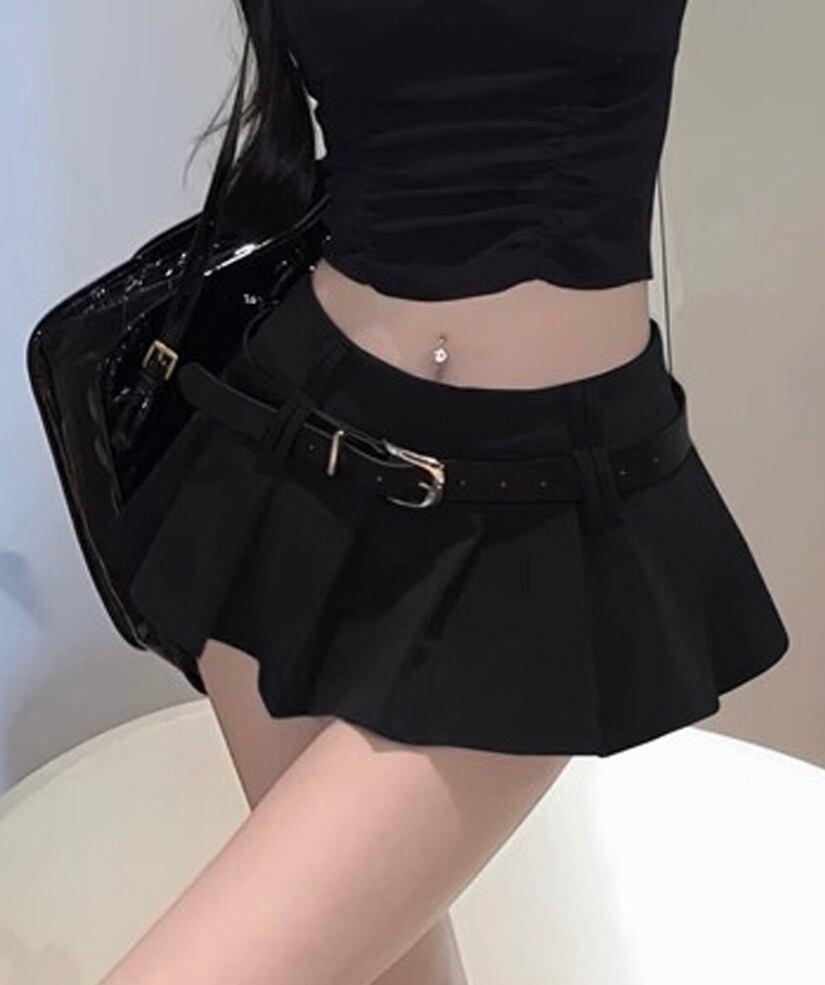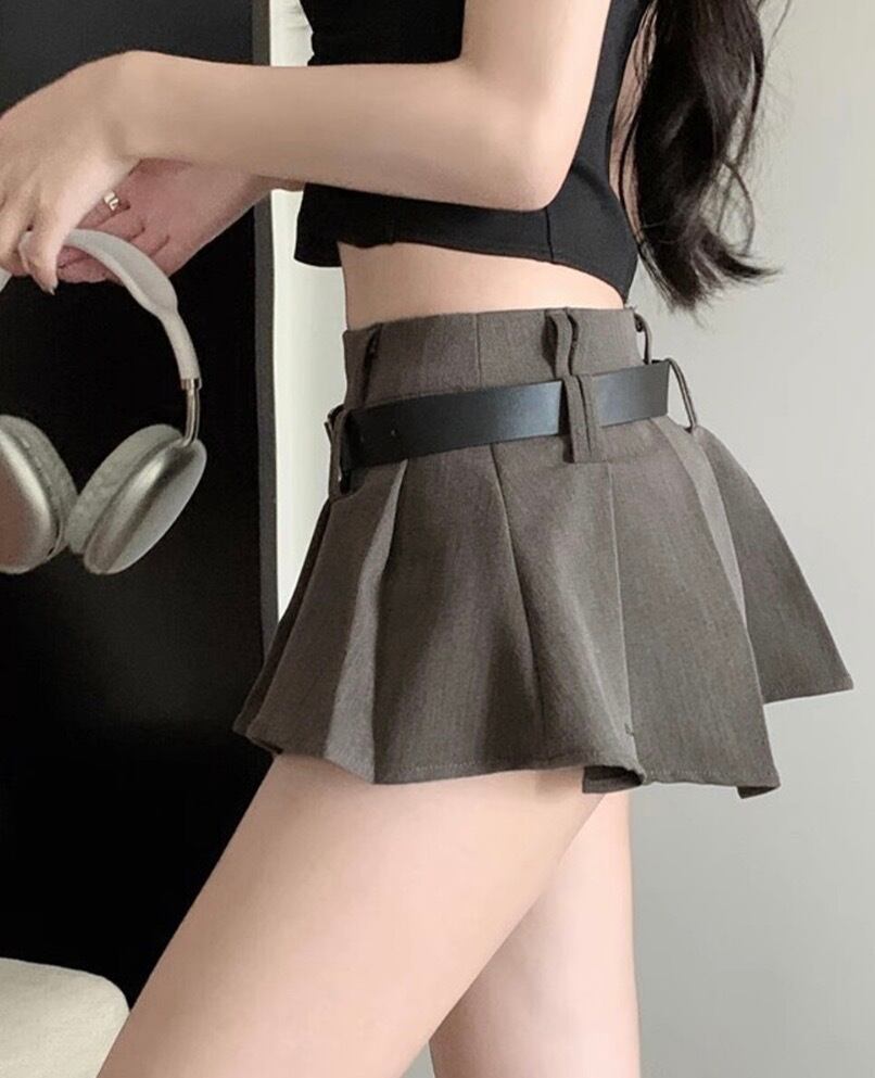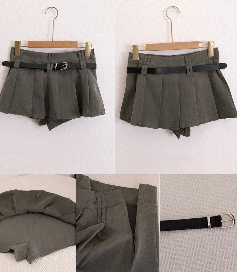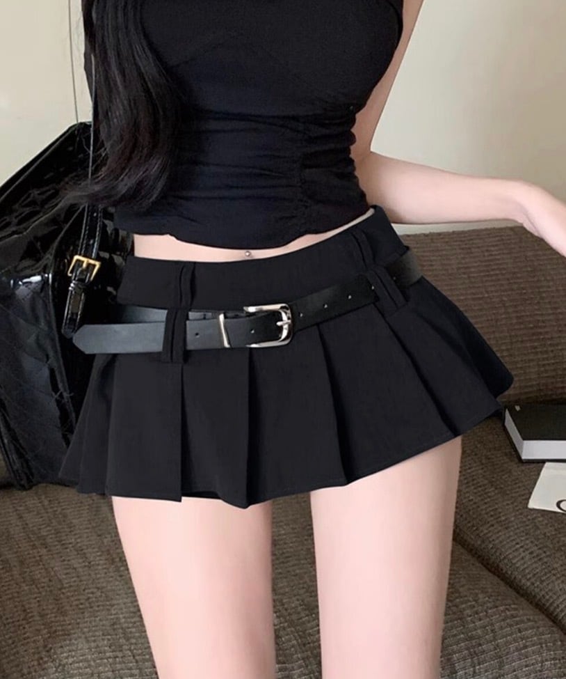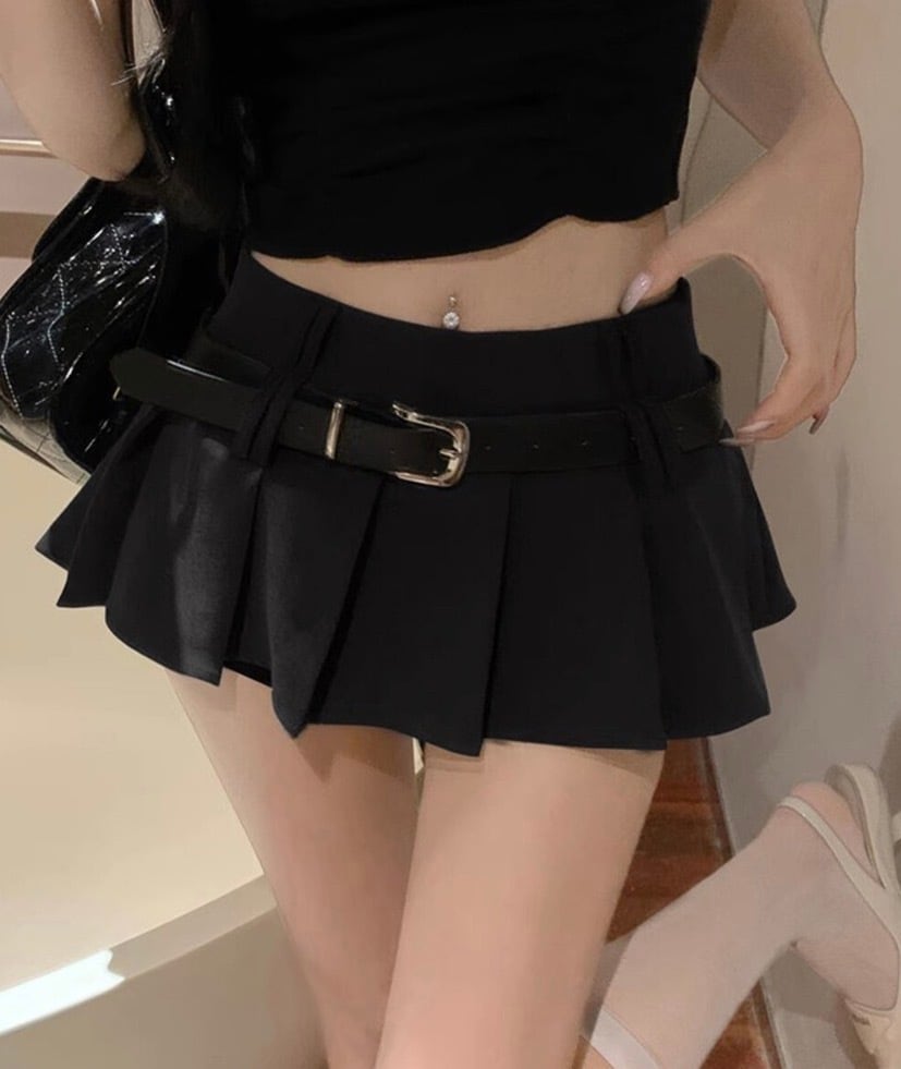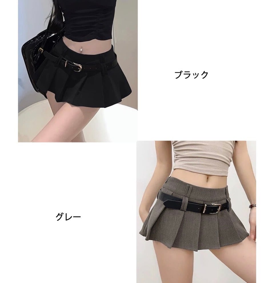 ミニスカートベルト付きプリーツスカート