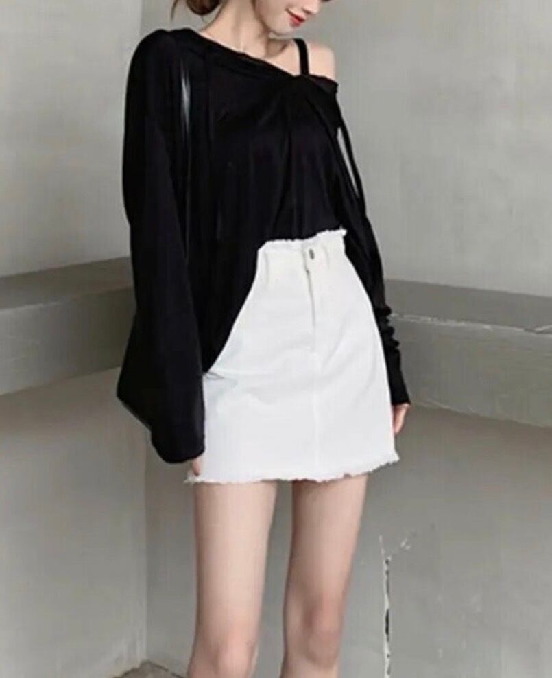 カットオフデザイン&ポケット付き、活発な印象で爽やかに可愛らしくきまります。