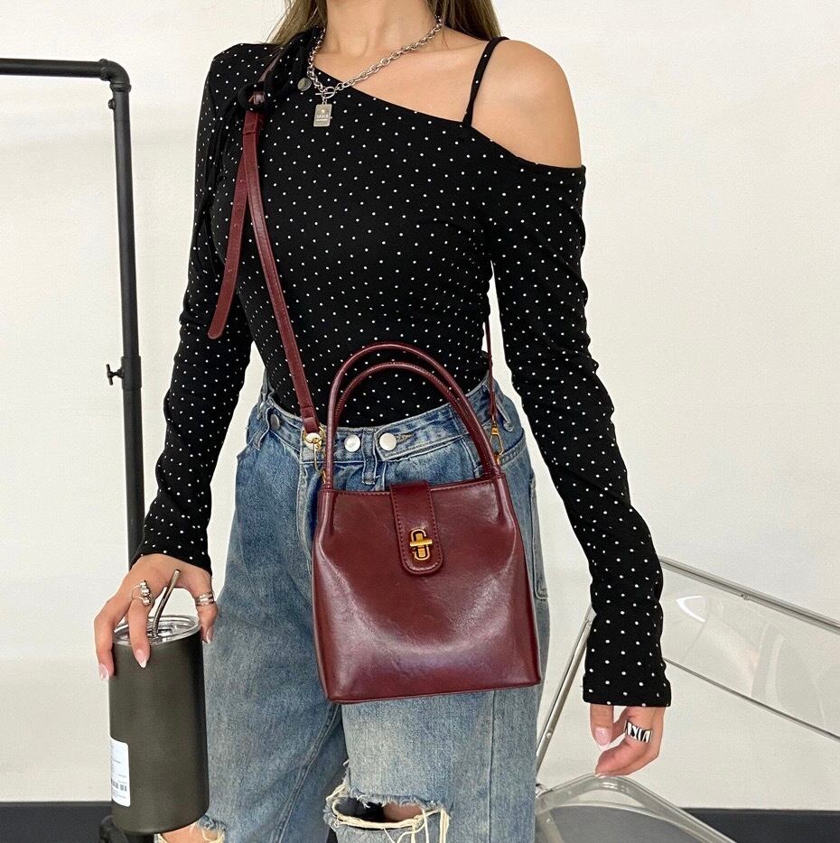 レトロ合成皮革ショルダーバッグ 2WAY ハンドバッグ アンティーク調 ミニ BAG