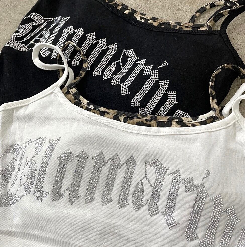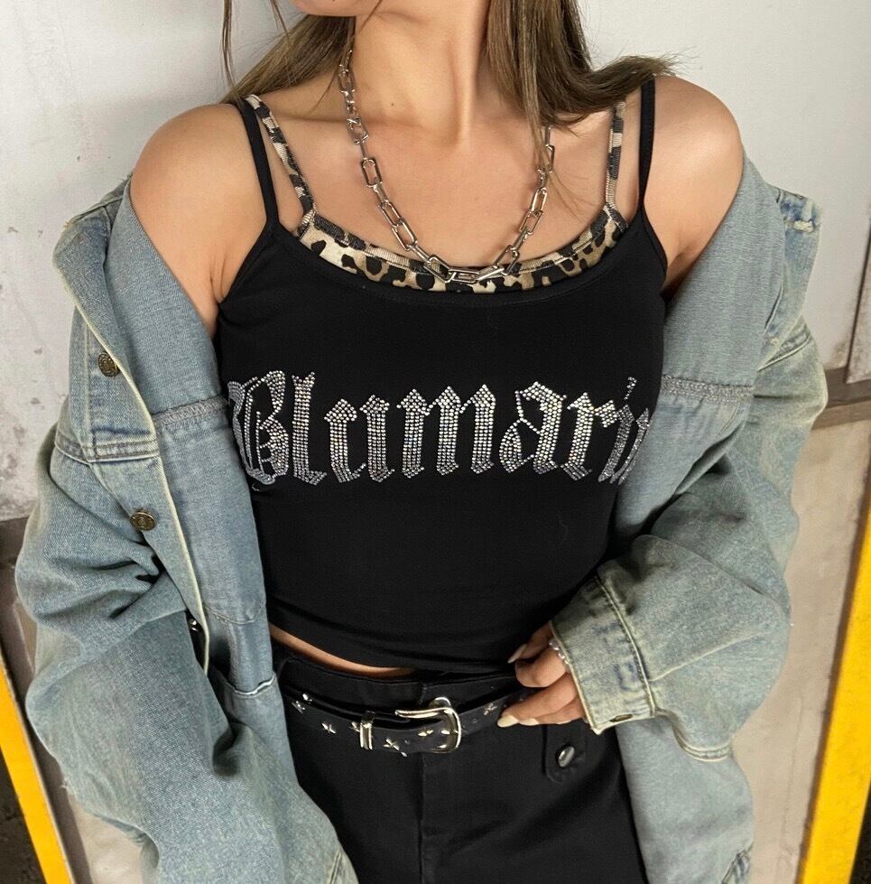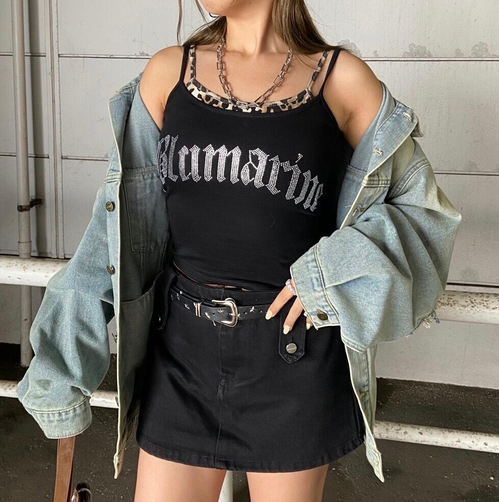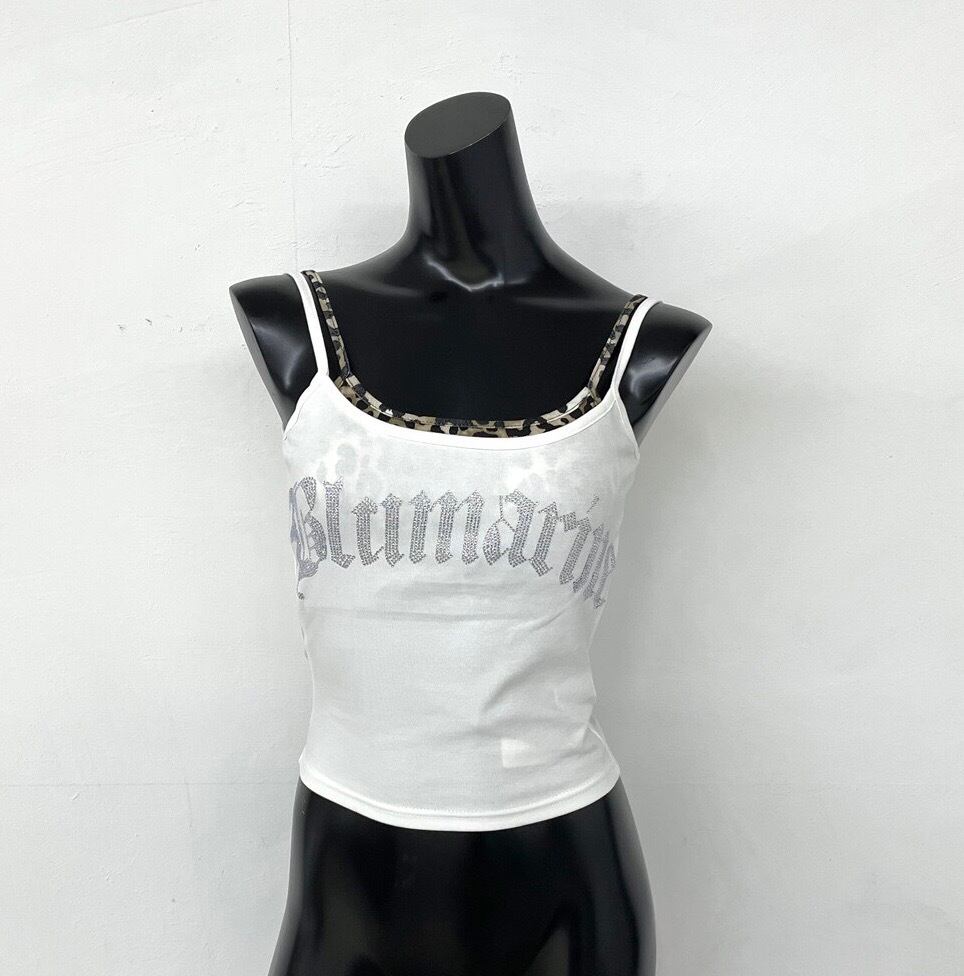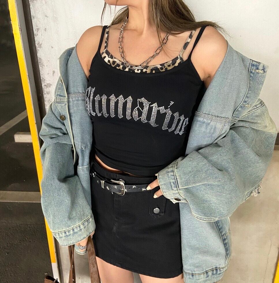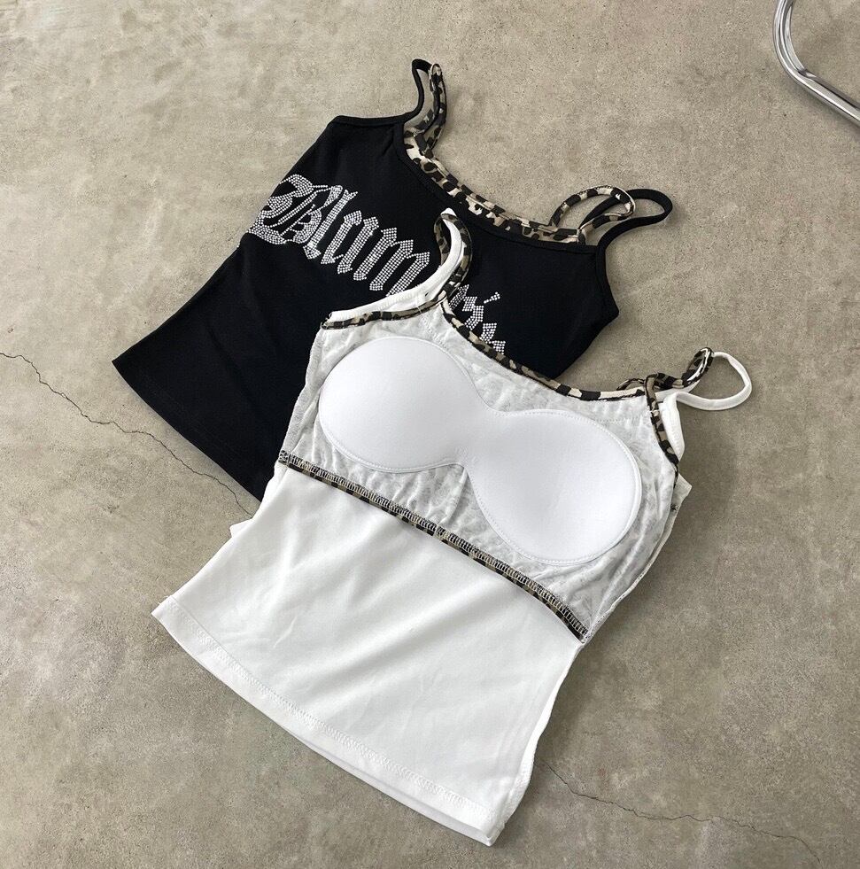 ストーンロゴヒョウ柄アンサンブル風タンクトップ ラインストーン レオパード