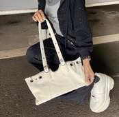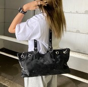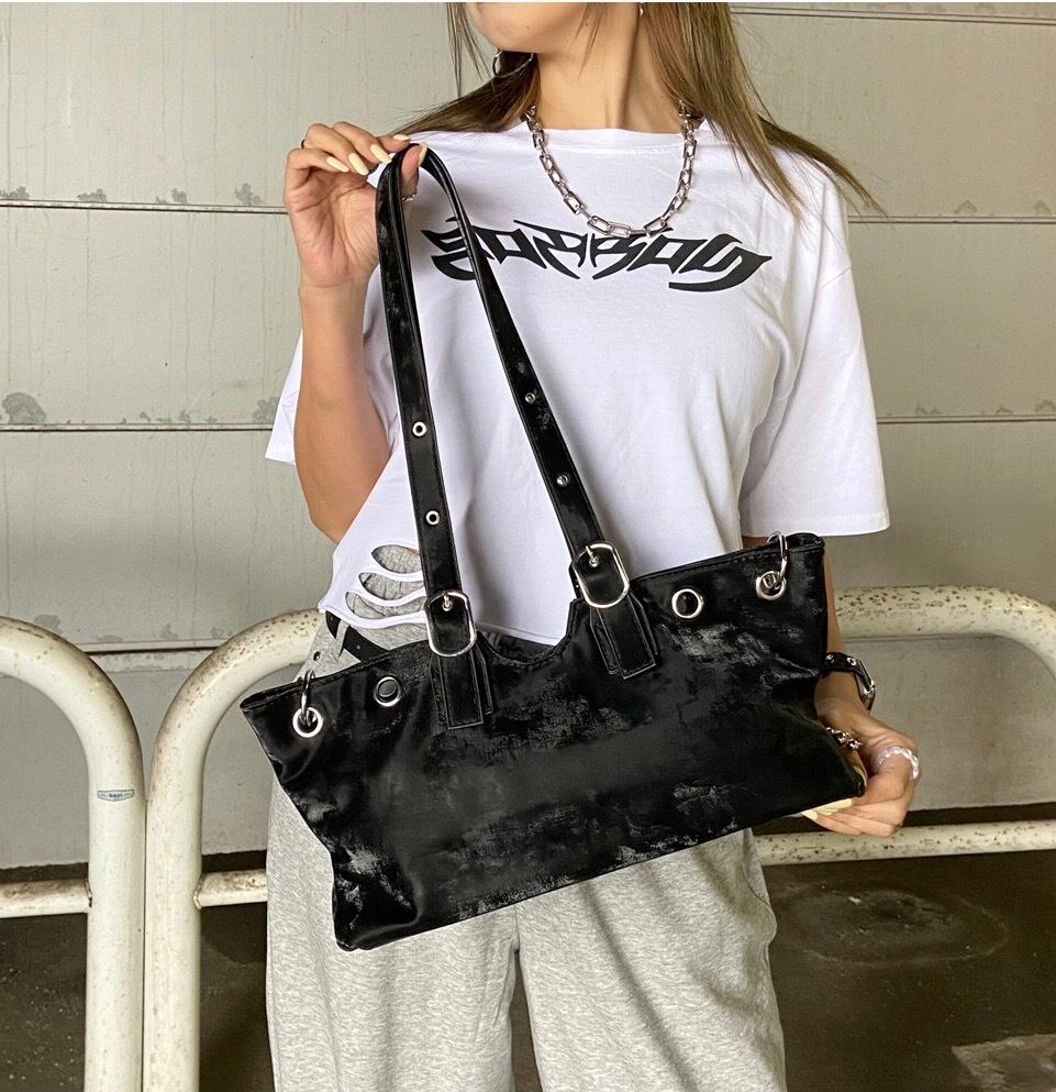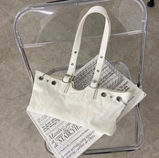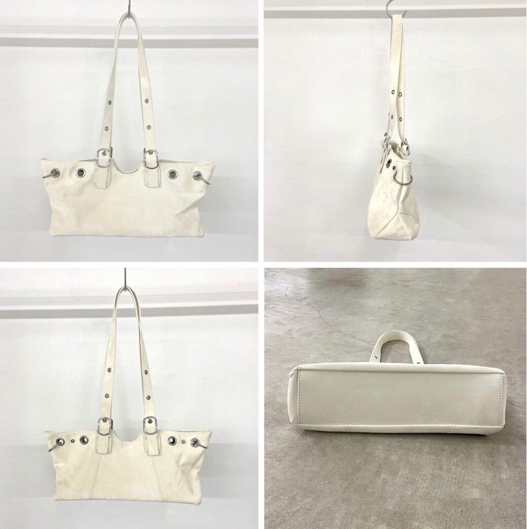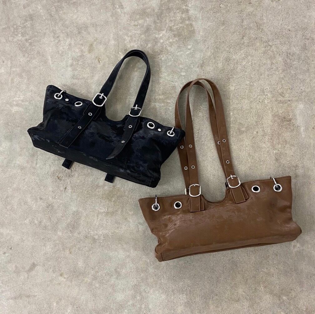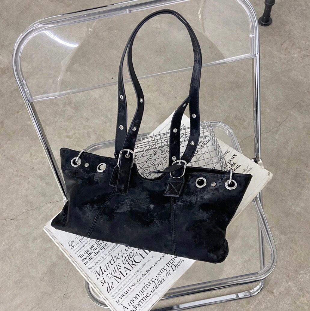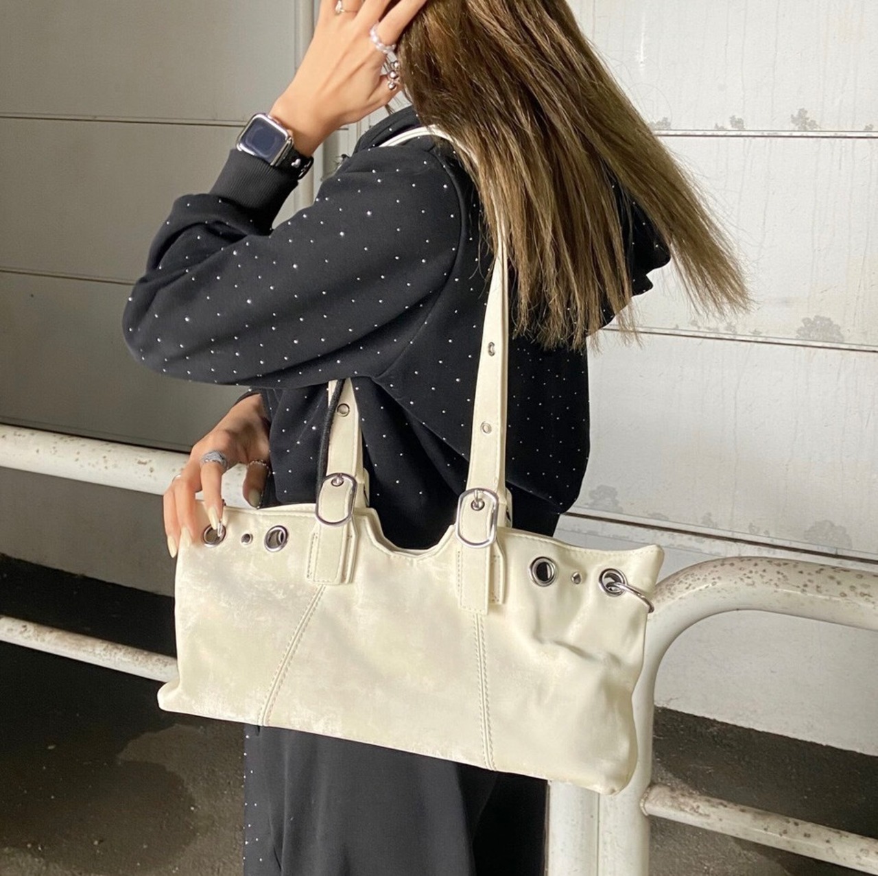 ハトメリングトートバッグ 合成皮革 フェイクレザー 横長バッグ スタッズ