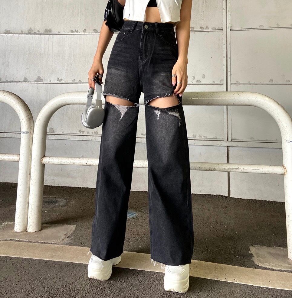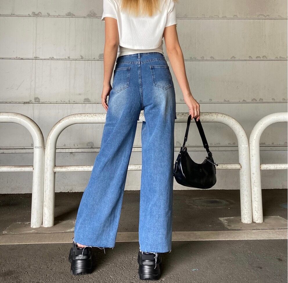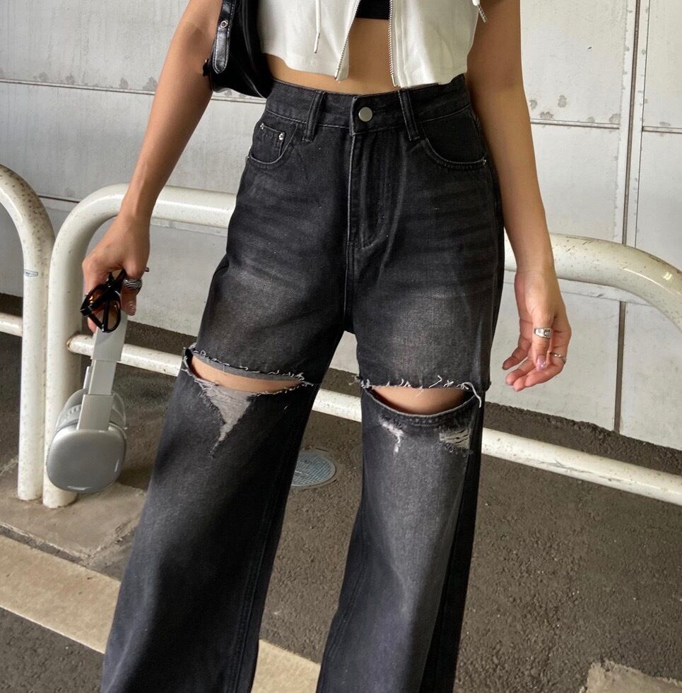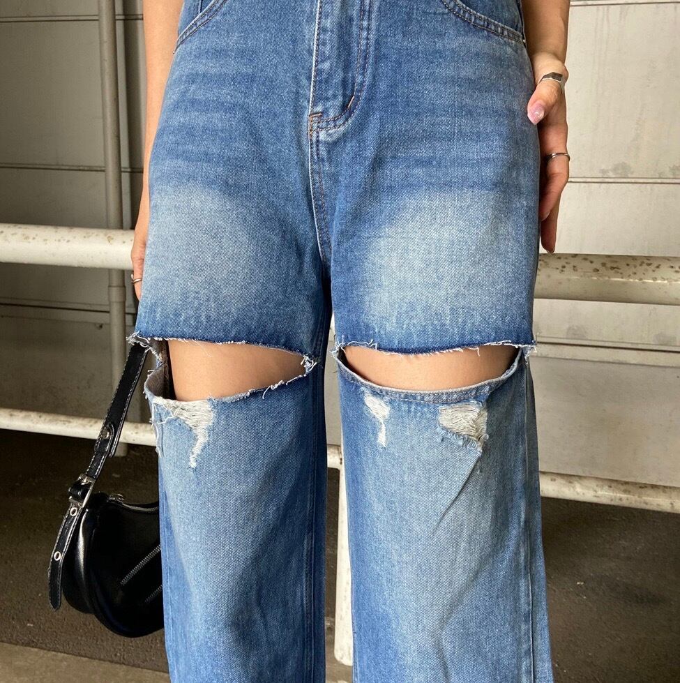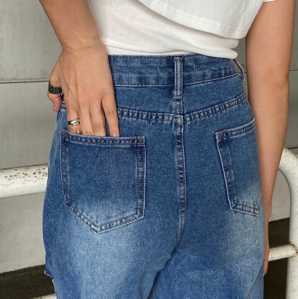 ダメージデニムパンツ。
