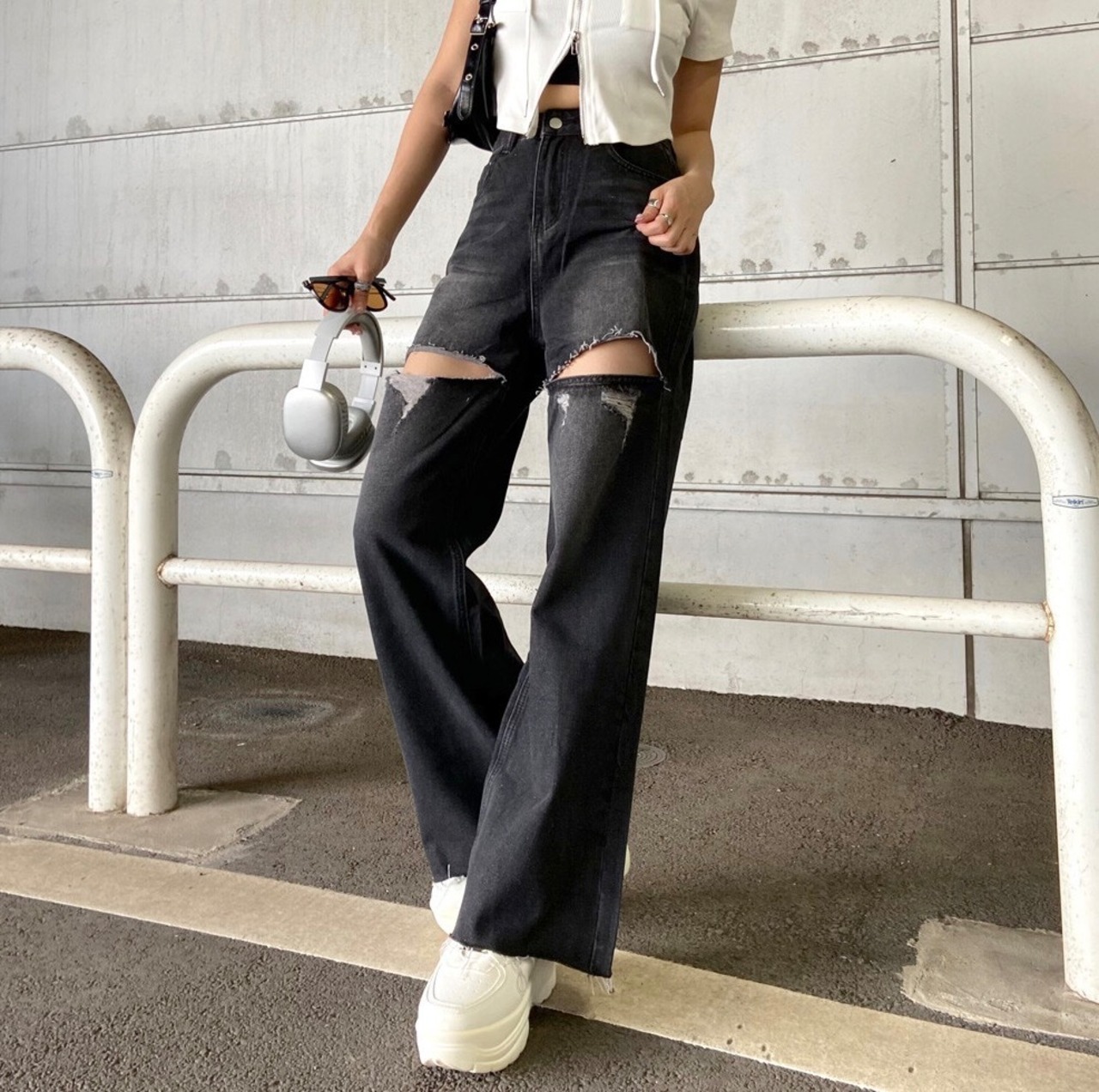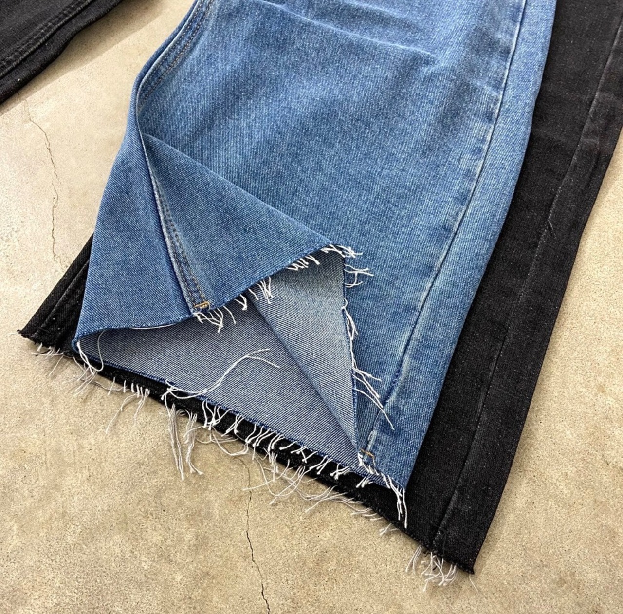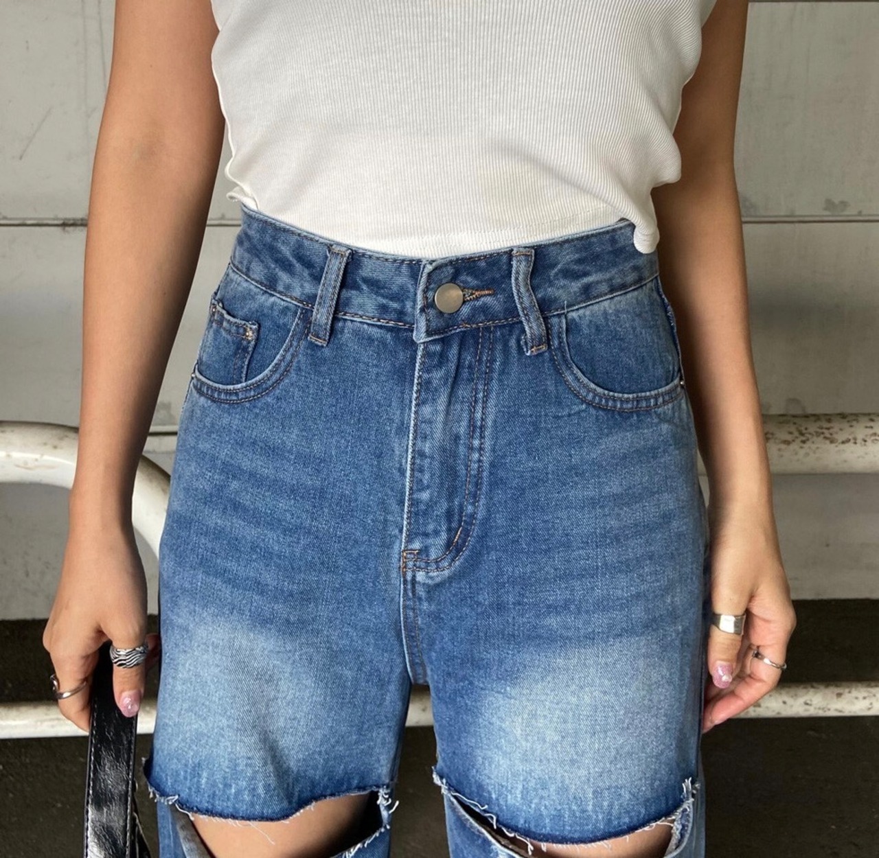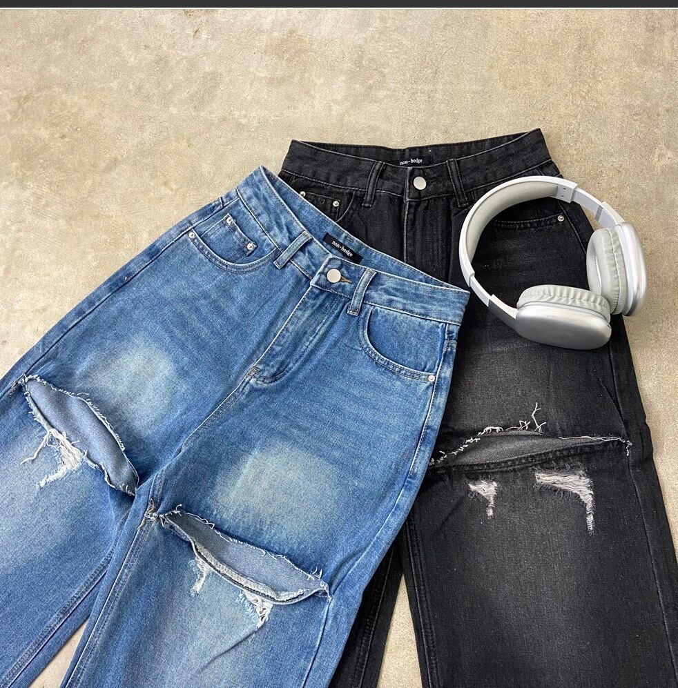 ダメージデニムパンツ。