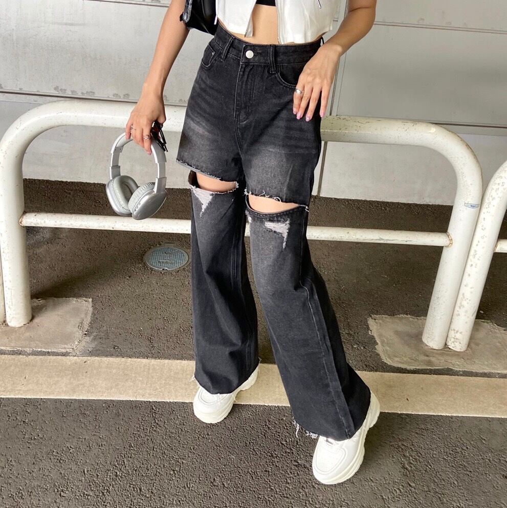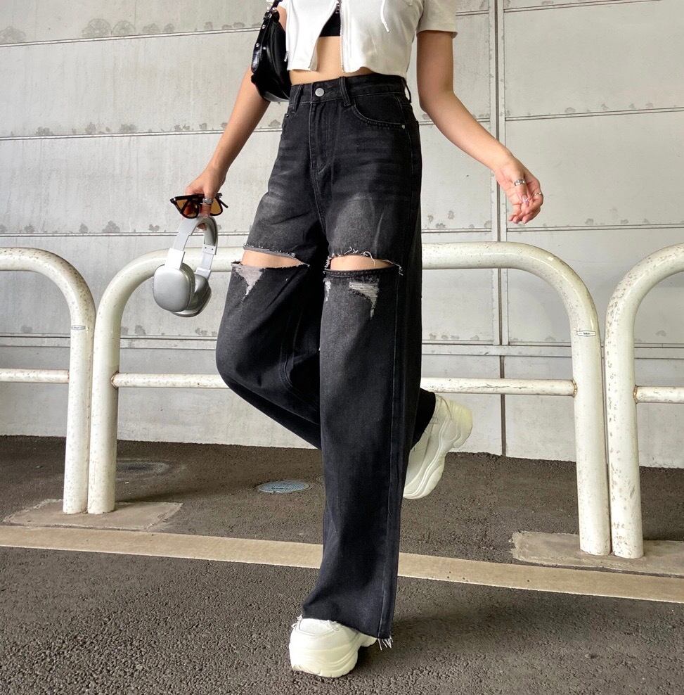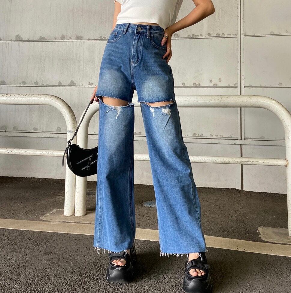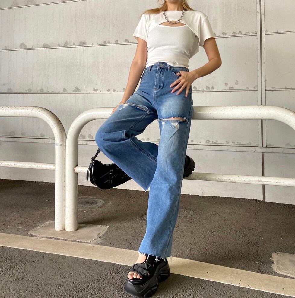 ダメージストレートデニムパンツ