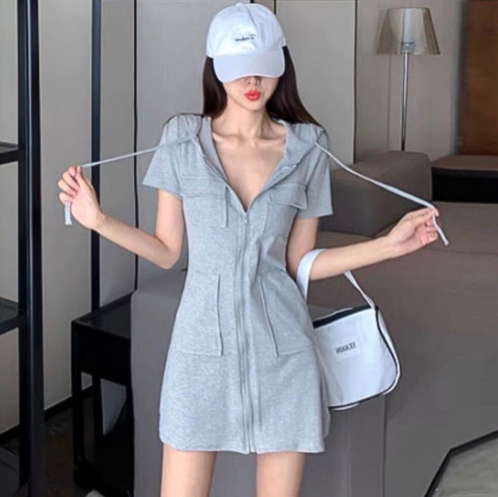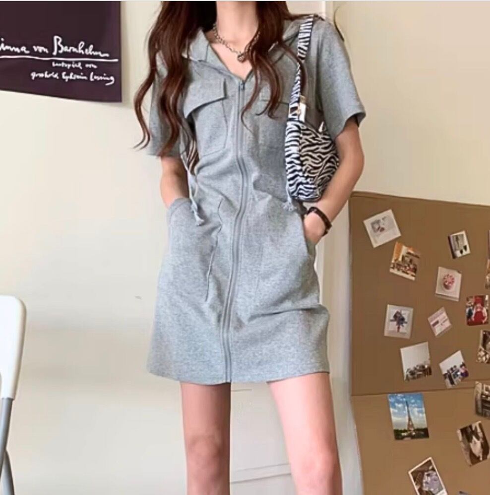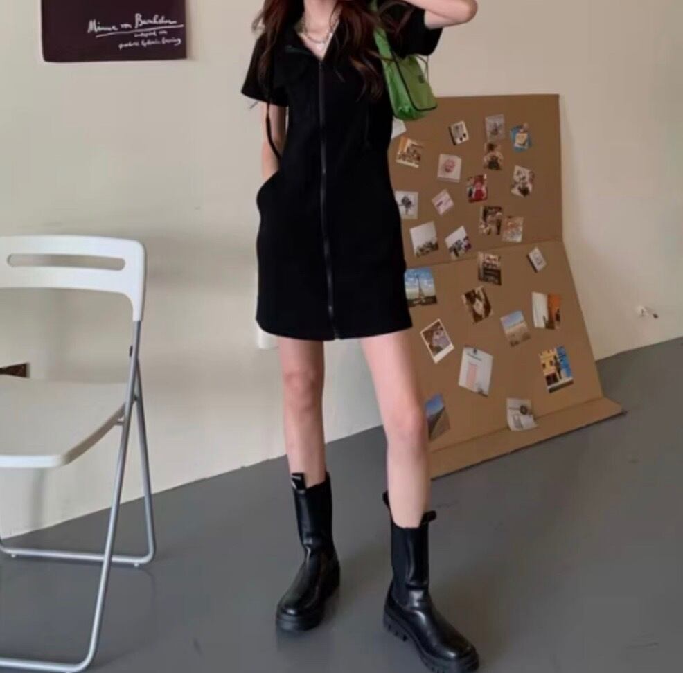 -フロントジップデザインがアクセントになったミニワンピース。